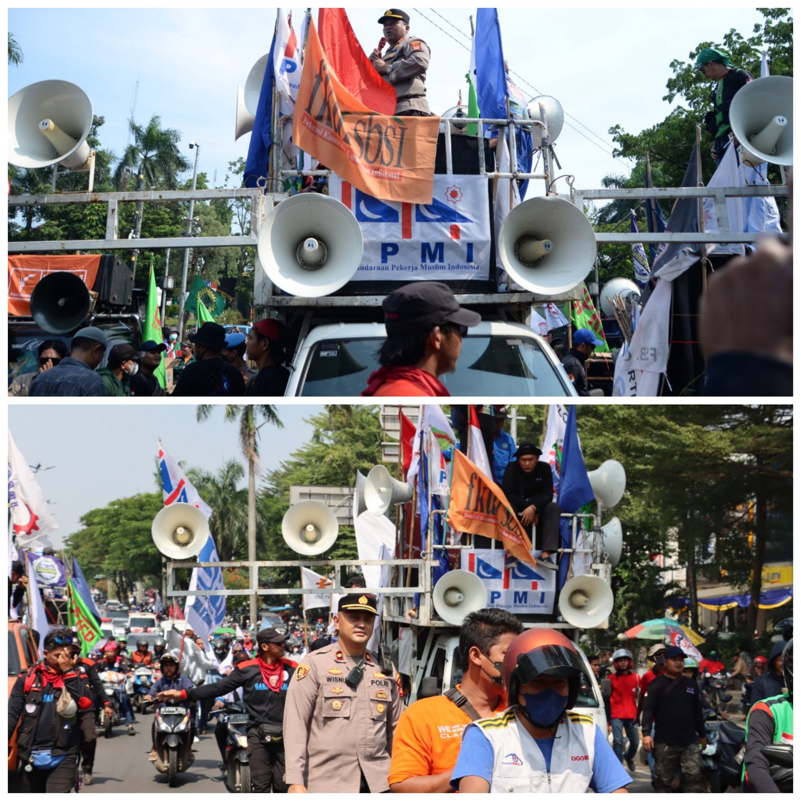 Pihak Kepolisian dari Polres Bogor yang melakukan pengawalan terhadap massa aksi yang akan menggelar aksi unjuk rasa tersebut pun ikut berjalan bersama buruh Kabupaten Bogor hingga titik dilaksanakan aksi.