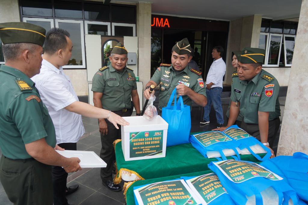 SKI | Banyumas – 5000 paket daging dan beras dari PT. Suri Nusantara Jaya Tangerang, untuk Kodam IV/Diponegoro diserahkan kepada Korem 071/Wijayakusuma Banyumas, dalam rangka bakti sosial membantu meringankan beban kehidupan masyarakat.
