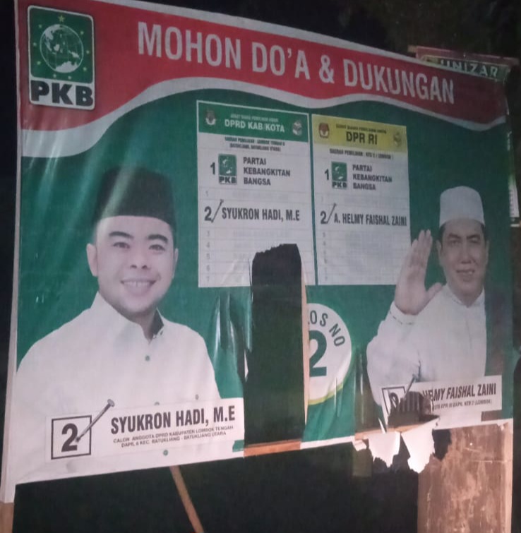 Seperti yang dialami Caleg DPR RI dari partai PKB nomor urut 2 Helmy Faishal Zaini (HFZ) dapil NTB 2, menurut laporan dari tim pemenangnya ada sekitar 60 baliho mereka dicabut di kecamatan Kopang, Praya Tengah, Praya serta Batukliang Kabupaten Lombok Tengah dan ada sekitar 10 baliho yang