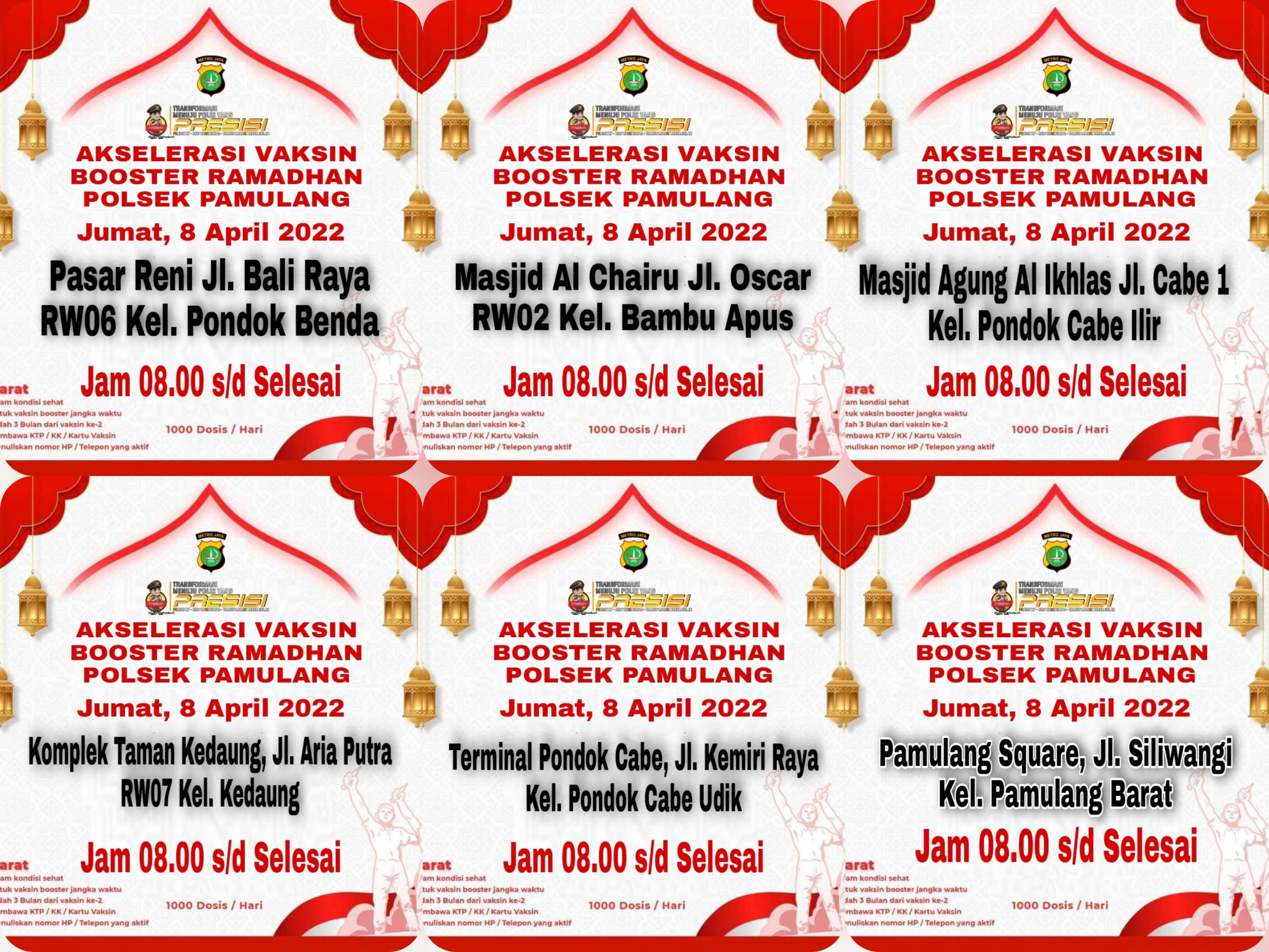 SKI | Tangsel – Selama bulan puasa, Polsek Pamulang, Polres Tangsel akan terus berkomitmen untuk membantu masyarakat dengan melaksanakan Akselerasi vaksinasi Booster Ramadhan dan menyediakan gerai vaksinasi di wilayah hukum polsek pamulang.