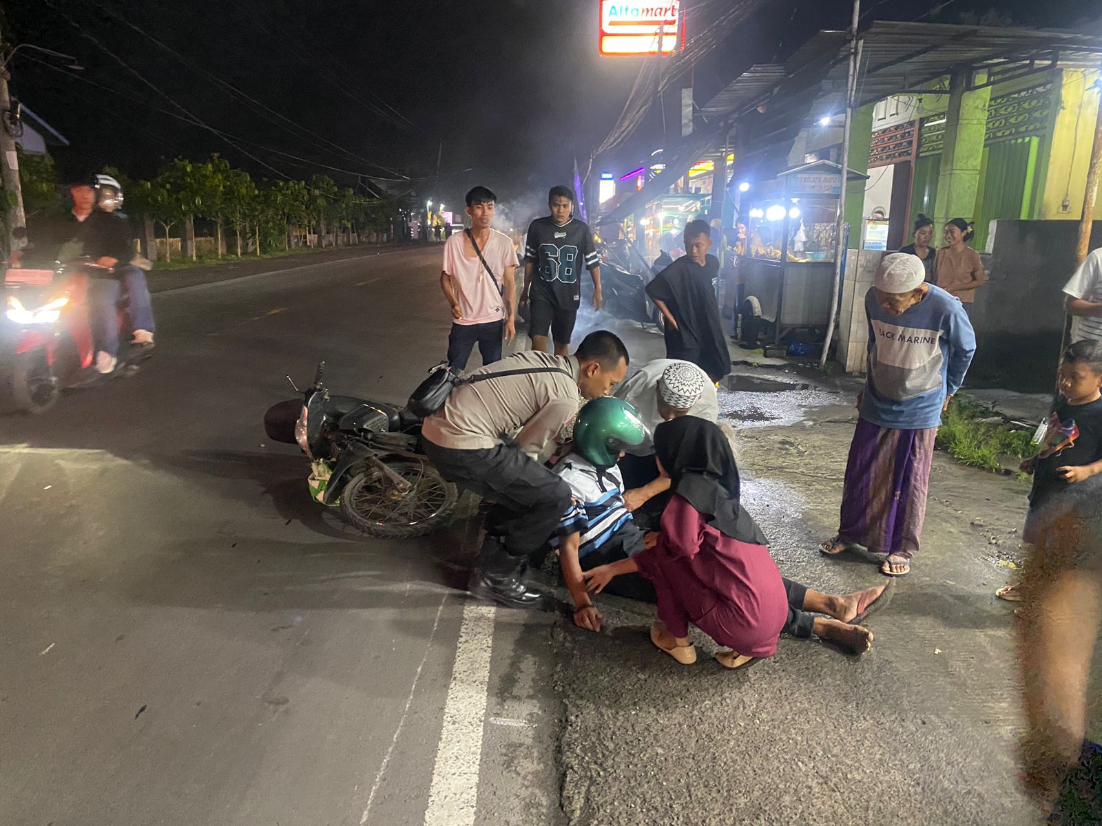 SKI | Lotim – Anggota Polsek Terara sigap membantu warga yang menjadi korban laka lantas di jalur utama depan Mapolsek Terara,Kamis malam (22/5).Dengan membantu memberikan pertolongan ke puskesmas Terara.