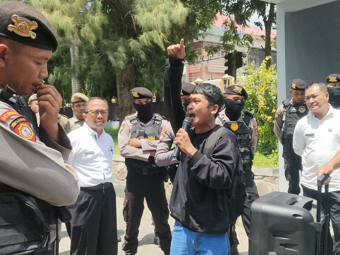 Massa aksi dengan dijaga ketat aparat kepolisian terus menyuarakan aspirasinya secara bergantian. Dengan sangat menyayangkan sikap dari Pj Bupati Lotim yang tidak mau menerima kami untuk melakukan hearing terhadap persoalan masyarakat masalah tambang.