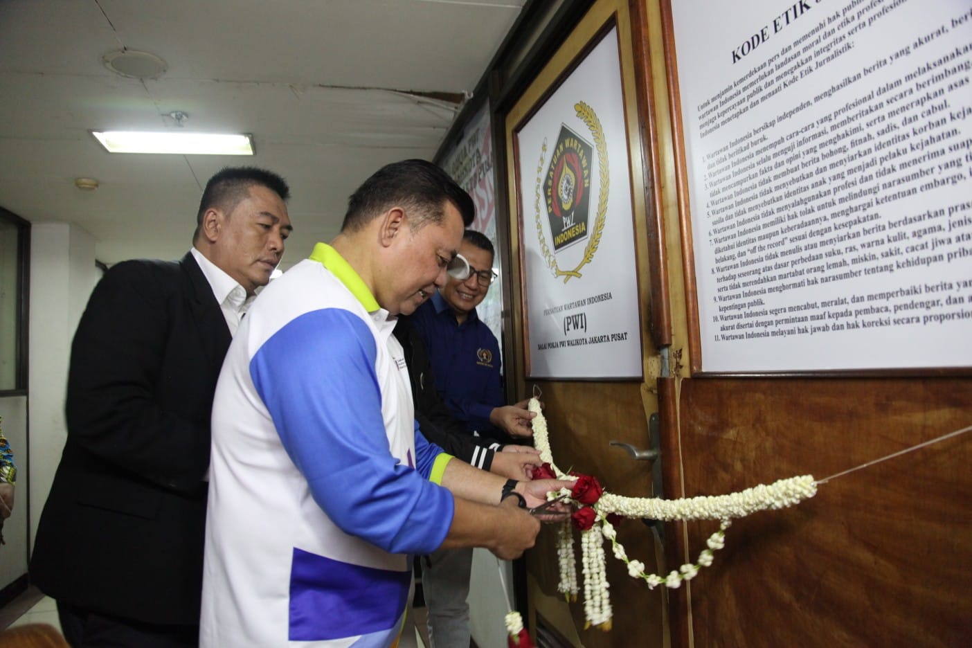 SKI | Jakarta – Asistem Pemerintahan (Aspem) Denny Ramdany melakukan pengguntingan pita sebagai peresmian Kantor Kelompok Kerja (Pokja) Persatuan Wartawan Indonesia (PWI) Wali Kota Administrasi Jakarta Pusat di Blok C Lantai 3, Jumat (8/11/2023).