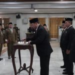 SKI | JEPARA – Penjabat Bupati Jepara Edy Supriyanta membacakan empat pantun masing-masing ditujukan kepada empat pimpinan DPRD Kabupaten Jepara usai pelantikan