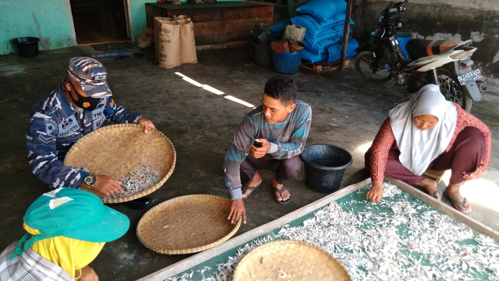 Dalam Komsos tersebut, Babinpotmar membantu warga binaannya untuk menjemur ikan yang sudah direbus. Ikan tersebut merupakan olahan dari hasil tangkapan nelayan setempat.