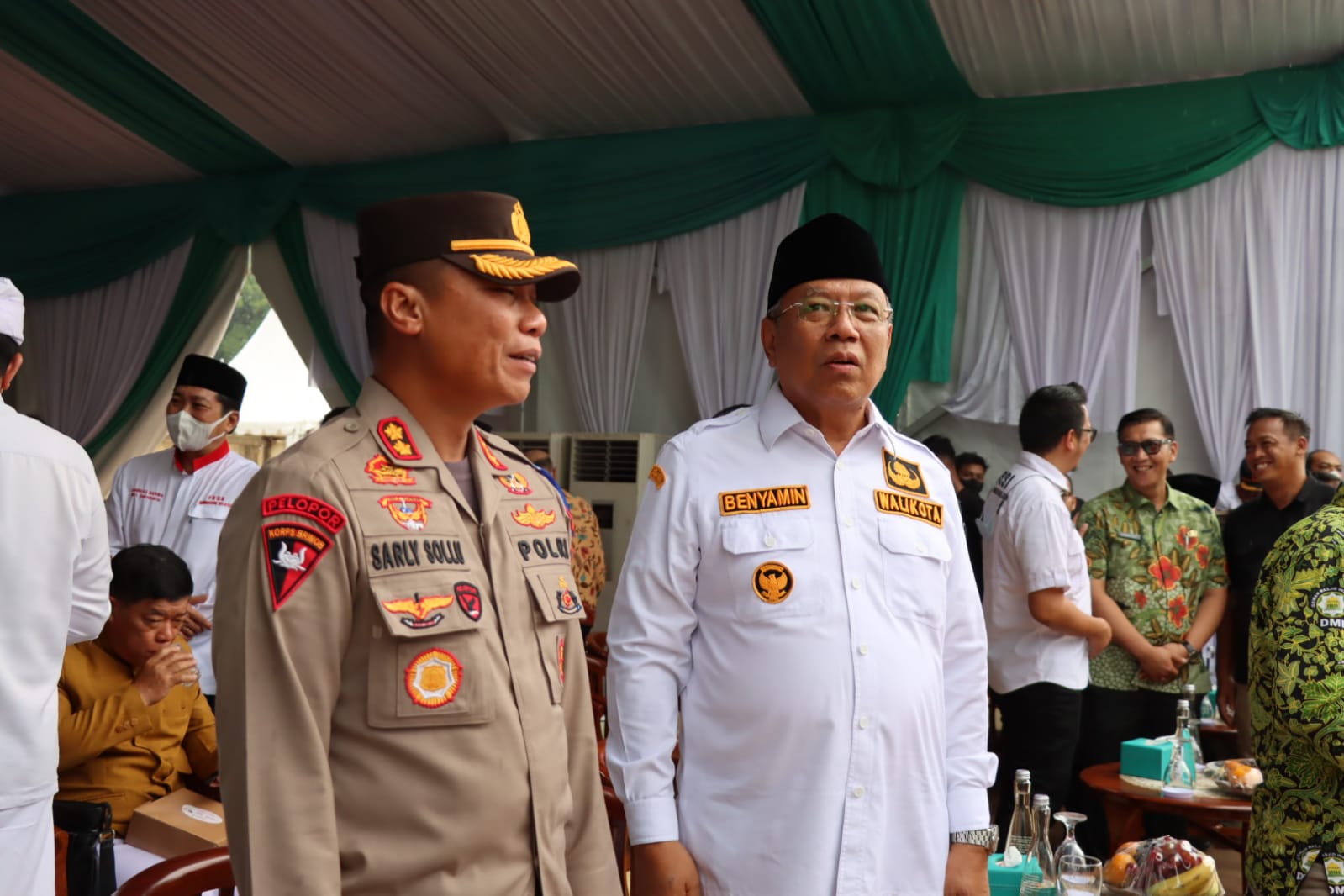 Dalam giat doa bersama, turut hadir Kapolres Tangsel AKBP Sarly Sollu, S.I.K , M.H, Walikota Tangsel Drs. H. Benyamin Davnie, Ketua DPRD Tangsel H. Abdul Rasyid, S.Ag., Kajari Tangsel Silpia Rosalina, S.H., M.H., Kepala BPN Tangsel Harison Mocodompis S.E., M.M., C.Med., Kepala BNNK Tangsel AKBP Renny Puspita, Sekda Kota Tangsel Bpk. Bambang Noertjahjo dan Para Tokoh Agama Kota Tangerang Selatan beserta PSSI Kota Tangerang Selatan.
