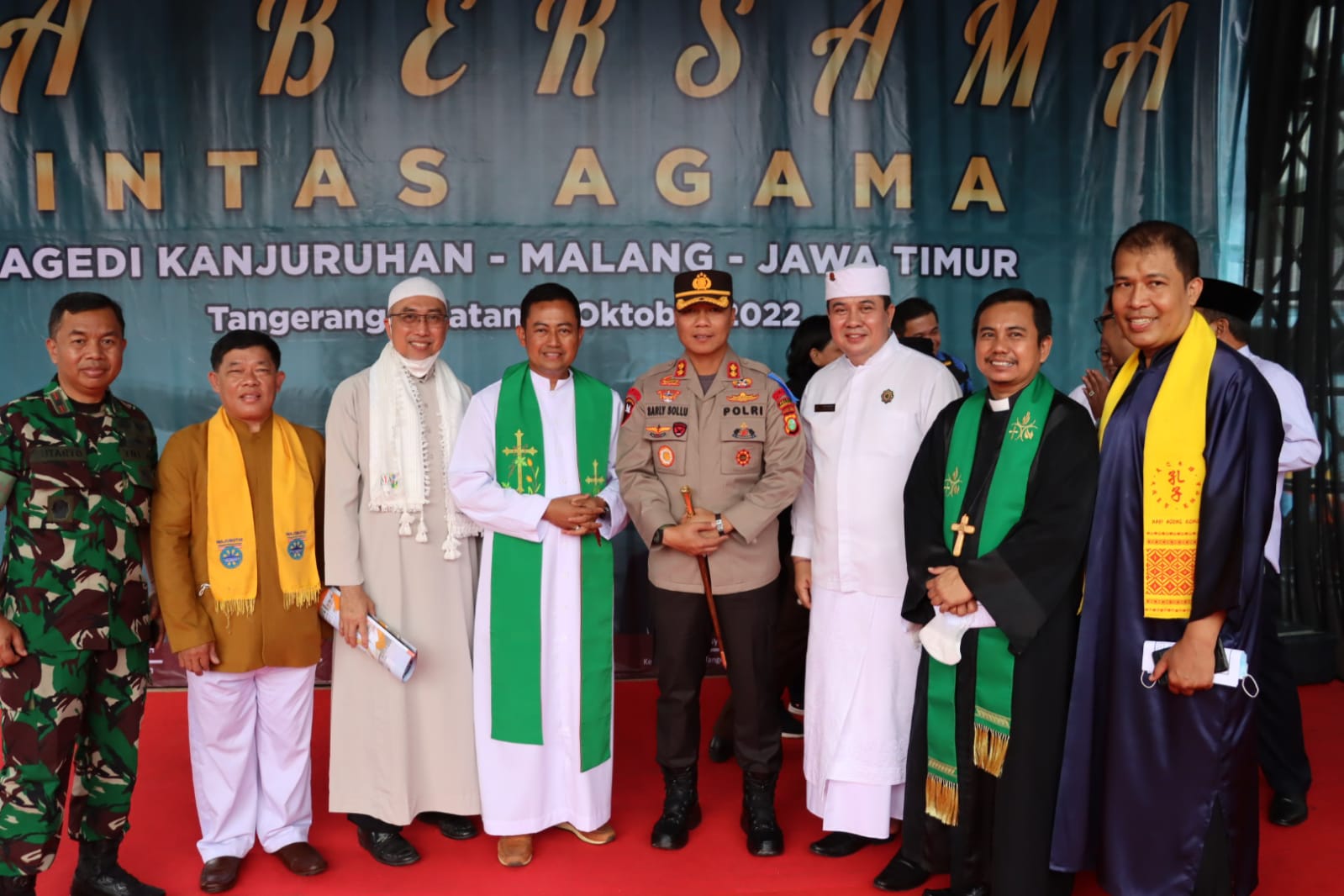 Disisi yang sama, Kapolres Tangsel AKBP Sarly Sollu, S.I.K , M.H, memaparkan, bahwa aksi doa bersama lintas agama ini untuk menggenang 127 orang korban yang meninggal dunia dan gugurnya dua orang teman sejawat Polri, yang bertugas di lapangan.Dan sebagai bentuk solidaritas sesama umat Muslim.