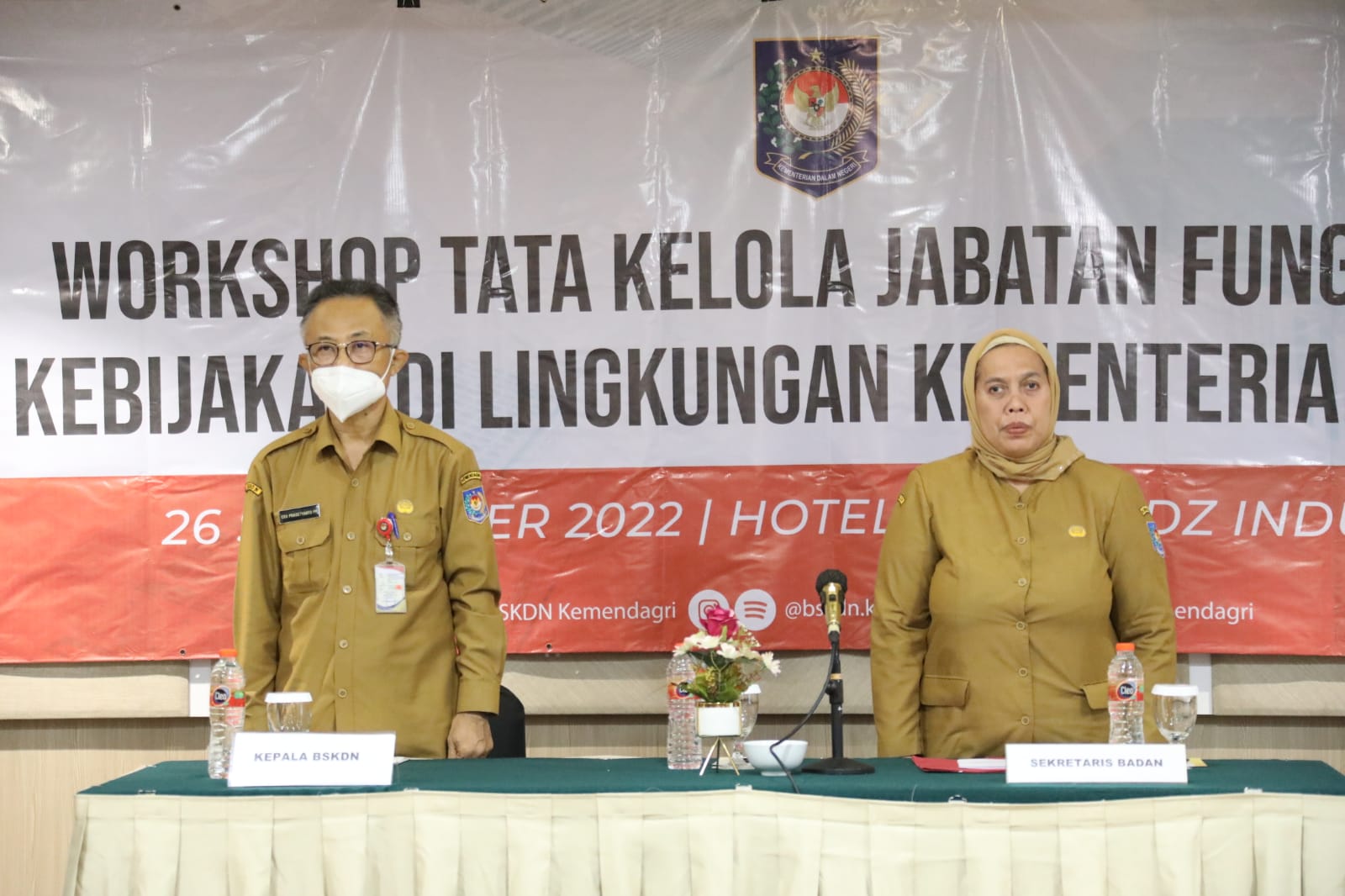 SKI | Jakarta – Badan Strategi Kebijakan Dalam Negeri (BSKDN) Kementerian Dalam Negeri (Kemendagri) menggelar Workshop Tata Kelola Jabatan Fungsional Analis Kebijakan di Lingkungan Kemendagri. Upaya ini dilakukan untuk memperkuat kompetensi analis kebijakan di Kemendagri. Kegiatan tersebut diselenggarakan secara luring dan daring di Hotel Orchardz Industri, Jakarta Pusat, pada Senin 26 September 2022.