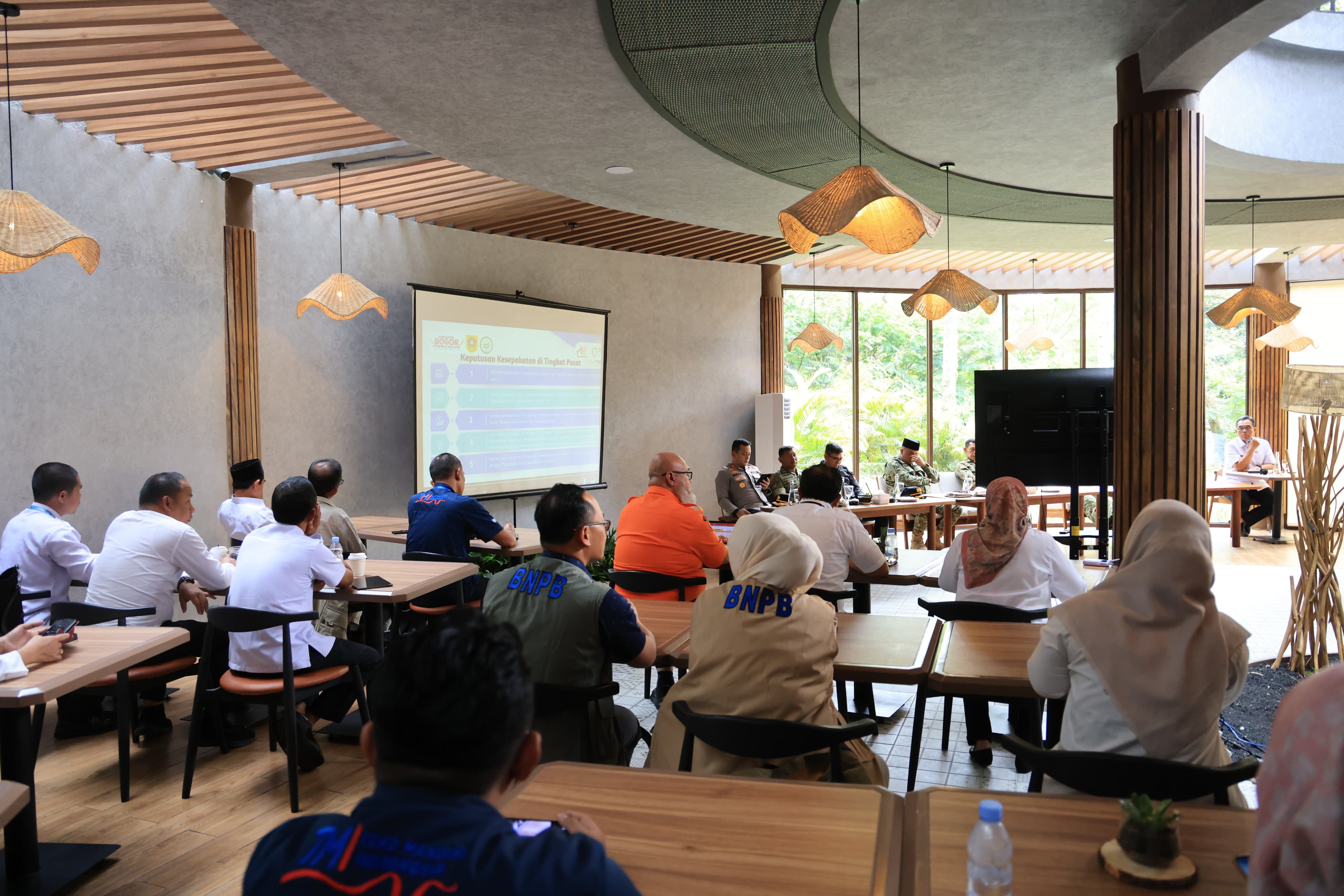 SKI Cisarua — Bupati Bogor Rudy Susmanto bersama Forkopimda dan jajaran Pemerintah Kabupaten Bogor melaksanakan rapat persiapan penanaman vegetasi serentak serta pembahasan Program Koperasi Desa Merah Putih, yang digelar di Enchanting Valley, Cisarua, pada Rabu (5/11/2025).Dalam arahannya, Bupati Bogor Rudy Susmanto menegaskan pentingnya kolaborasi lintas sektor antara pemerintah, dunia usaha, dan masyarakat dalam menjaga kelestarian lingkungan sekaligus mendorong pertumbuhan ekonomi rakyat, terutama di wilayah Bogor Selatan.“Kita berharap dunia investasi tumbuh, pengangguran berkurang, dan ekonomi masyarakat kembali pulih. Program ini harus beriringan dengan semangat Kementerian Lingkungan Hidup, Badan Penanggulangan Bencana Nasional (BNPB), serta seluruh pelaku usaha di wilayah Bogor Selatan,” tegas Bupati Rudy.Rudy Susmanto juga menyoroti pentingnya peran seluruh pihak dalam menjaga ekosistem sungai sebagai aset lingkungan dan potensi wisata yang berharga. Ia menilai, keberadaan sungai yang bersih tidak hanya bernilai ekologis, tetapi juga meningkatkan nilai ekonomi kawasan wisata.“Sungai bukan hanya tempat mengalirnya air, tapi juga daya tarik wisata. Di wilayah seperti Cisarua atau Puncak, sungai yang terawat bisa menjadi potensi ekonomi. Namun pertanyaannya, sudahkah kita menjaga kelestariannya,” ujarnya.Sebagai tindak lanjut, BNPB akan melaksanakan penanaman pohon serentak pada 13 November 2025 yang dipusatkan di Enchanting Valley, Cisarua. Kegiatan ini juga akan dilakukan secara serentak di berbagai titik melalui sambungan zoom meeting, melibatkan pelaku usaha, pemerintah desa, dan masyarakat di sepanjang daerah aliran sungai (DAS) dari perbatasan Cianjur hingga Bekasi.Untuk memastikan keberlanjutan program, setiap lokasi penanaman akan didokumentasikan melalui foto udara (drone) sebelum, saat, dan setelah kegiatan, hingga pemantauan satu tahun pascapenanaman. Hal ini menjadi bagian dari mekanisme pengawasan Pemerintah Kabupaten Bogor agar kegiatan penghijauan berjalan efektif dan berkelanjutan.Selain itu, Bupati Bogor juga mengajak seluruh pelaku usaha wisata di kawasan Puncak untuk ikut aktif dalam penghijauan di area sekitar usaha mereka. (Tim Komunikasi Publik/ Diskominfo Kabupaten Bogor)