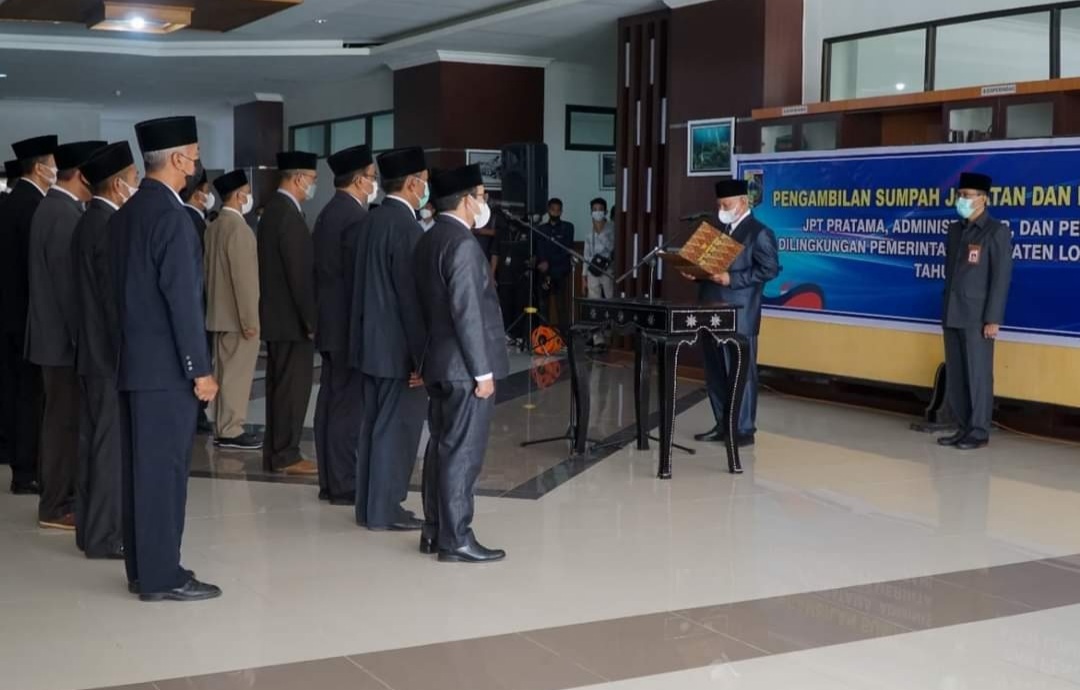 Pelantikan dan pengambilan sumpah jabatan eselon II,III dan IV lingkup Pemkab Lotim dilakukan langsung Bupati Lotim,HM.Sukiman Azmy di lantai satu loby kantor Bupati Lotim,Rabu (13|4).