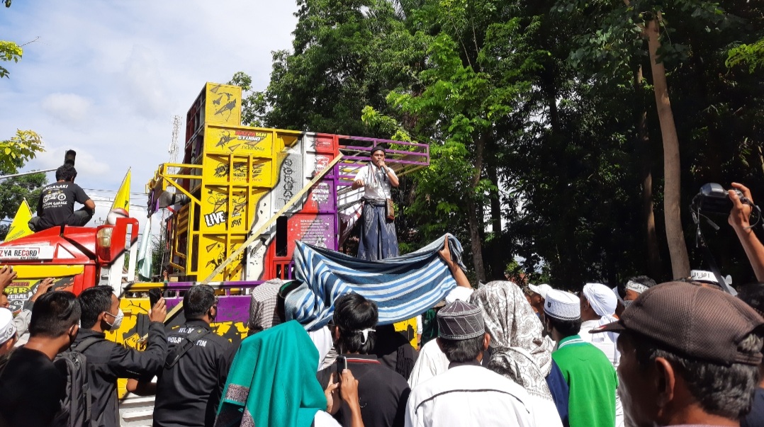 Demikian salah satu orasi yang disampaikan orator aksi gerakan Ahlusunnah Wal Jamaah,Eko Rahardi di depan kantor Bupati Lotim,Kamis (6|1).