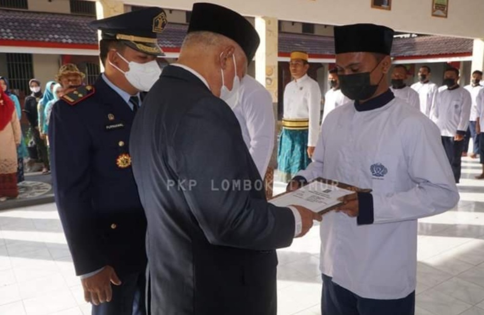 Bupati Kabupaten Lombok Timur,HM. Sukiman Azmy yang menjadi inspektur pada kesempatan tersebut sekaligus menyerahkan remisi umum.