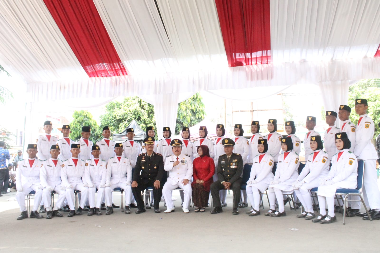 Tampak hadir pembina Paskibraka tingkat kecamatan serda Kusnadi,Siti Mulyanah, dan Peltu Jajang sebagai panitia upacara