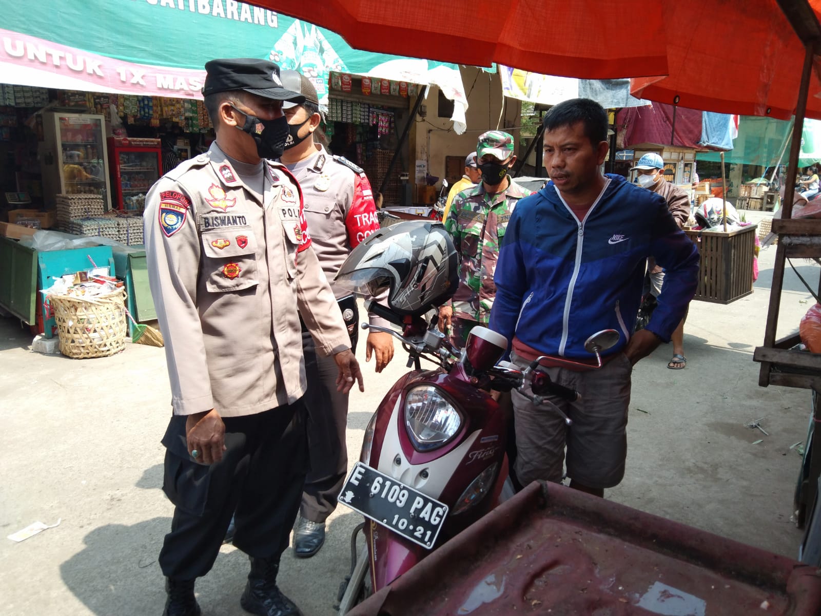 SKI | INDRAMAYU – Polsek Jatibarang jajaran Polres Indramayu Polda Jabar Bersama Koramil Jatibarang melaksanakan Ops Non Yustisi dalam rangka pendisplinan Protokol kesehatan di wilayah Kecamatan Jatibarang, Kabupaten Indramayu, Senin (17/1/2022) Pagi.