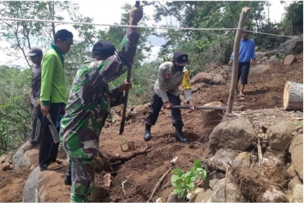 Sertu Samsul Hakim bersama masyarakat bergotong royong membuka jalan baru sepanjang 100 meter di Dusun Genteng Desa Suangi Timur Kecamatan Sakra. Tidak hanya Sertu Samsul Hakim, Babinsa Desa Kumbang Koranil 1615-05/Masbagik Sertu Husni Jayadi gotong royong bersama warganya melaksanakan pembongkaran cor jalan yang akan diperbaiki di Dusun Kumbung Barat desa setempat.