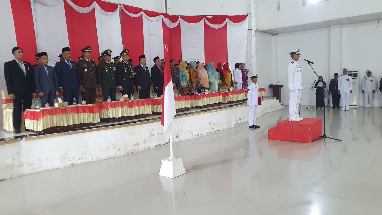 SKI | Simeulue,- Komandan Pangkalan TNI Angkatan Laut Simeulue Letkol Laut (P) Hendra Dwinanto, S.H., M.Tr.Opsla., selaku Inspektur Upacara (Irup) pada Upacara memperingati HUT Ke-77 TNI Tahun 2022 di Gedung Serbaguna Bupati Simeulue, Rabu (05/10/2022).