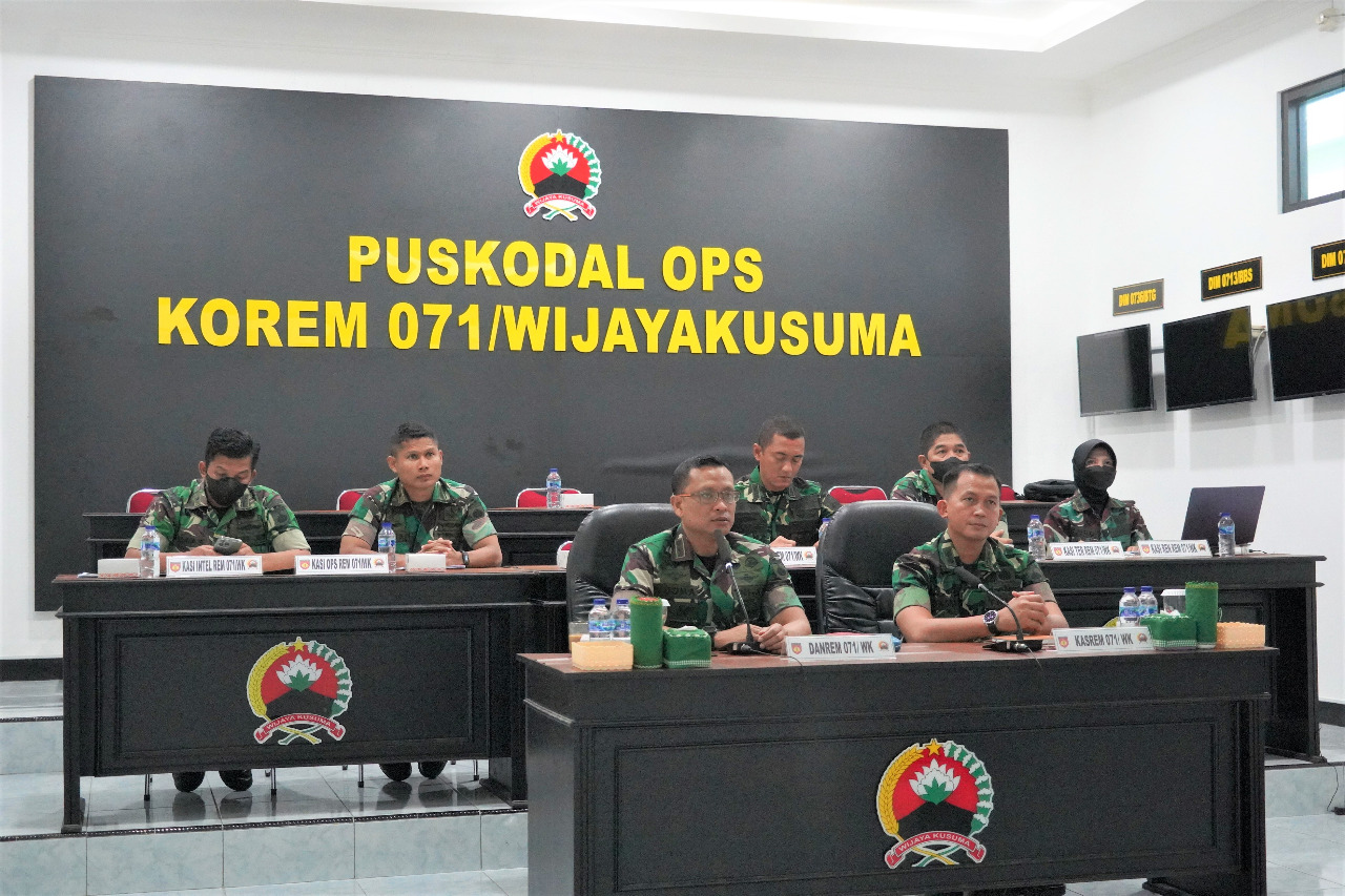 Mengingat hal tersebut, Danrem 071/Wijayakusuma Kolonel Inf Yudha Airlangga, S.E., guna untuk mengantisipasi bencana alam diwilayah jajaran Korem 071/Wijayakusuma, melalui video conference melaksanakan Mitigasi bencana alam kepada para Dandim sejajaran Korem 071/Wijayakusuma, Selasa (6/12/2022) di Ruang Pusdalops Makorem 071/Wijayakusuma, Sokaraja, Banyumas.