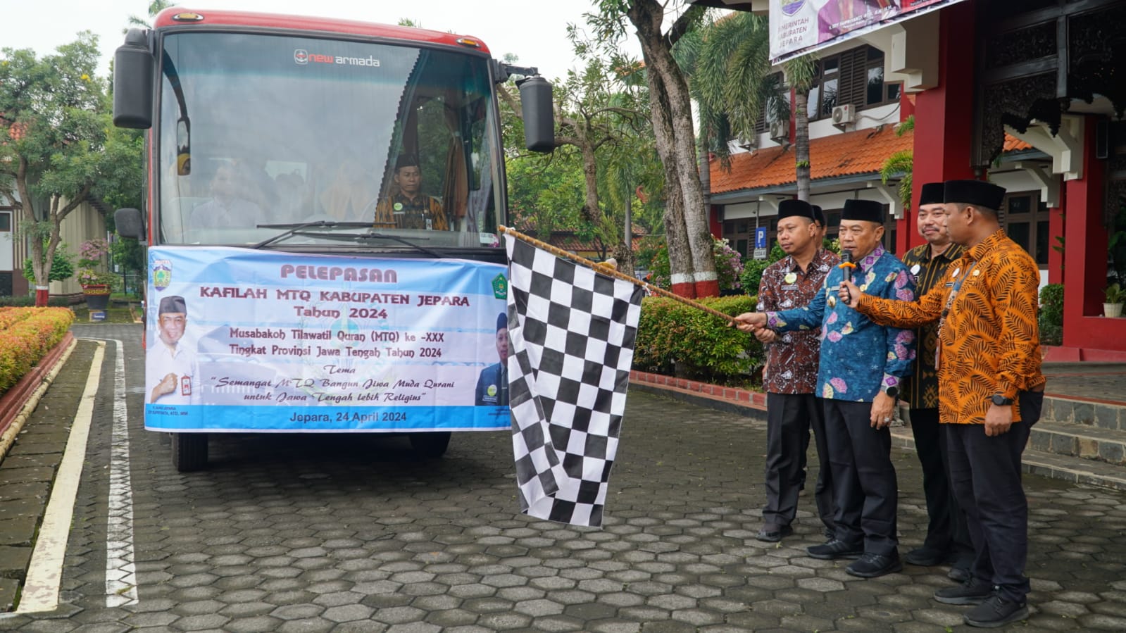 SKI | JEPARA – Penjabat Bupati Jepara Edy Supriyanta melepas kafilah Kabupaten Jepara yang akan bertanding di ajang Musabaqoh Tilawatil Qur’an (MTQ) ke-30 Tingkat Provinsi Jawa Tengah tahun 2024. Pelepasan dilakukan di Depan Kantor Bupati Jepara, Kamis (25/4/2024).