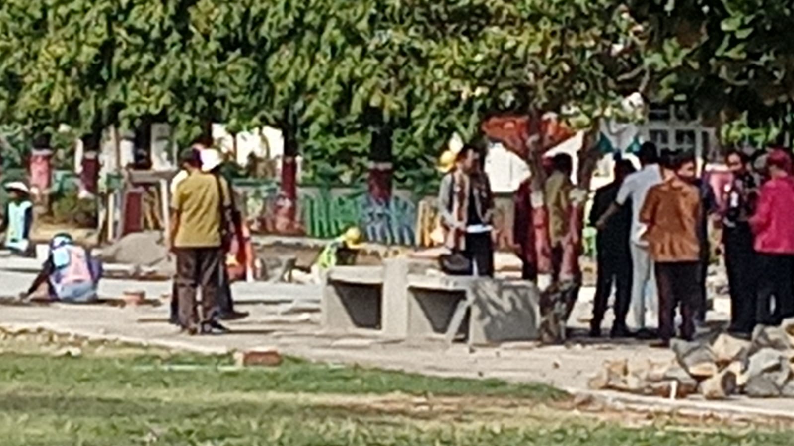 SKI | JEPARA – Penjabat Bupati Jepara Edy Supriyanta meninjau proses pengerjaan renovasi Alun-alun 1 Jepara, Selasa (10/9/2024). Setelah sekitar sebulan dikerjakan, renovasi Alun-alun 1 ini progresnya mencapai 11,5 persen. Akan tetapi, orang nomor satu di Jepara itu memastikan jika saat tahun baru nanti Alun-alun yang menjadi salah satu icon Jepara ini bisa digunakan masyarakat.