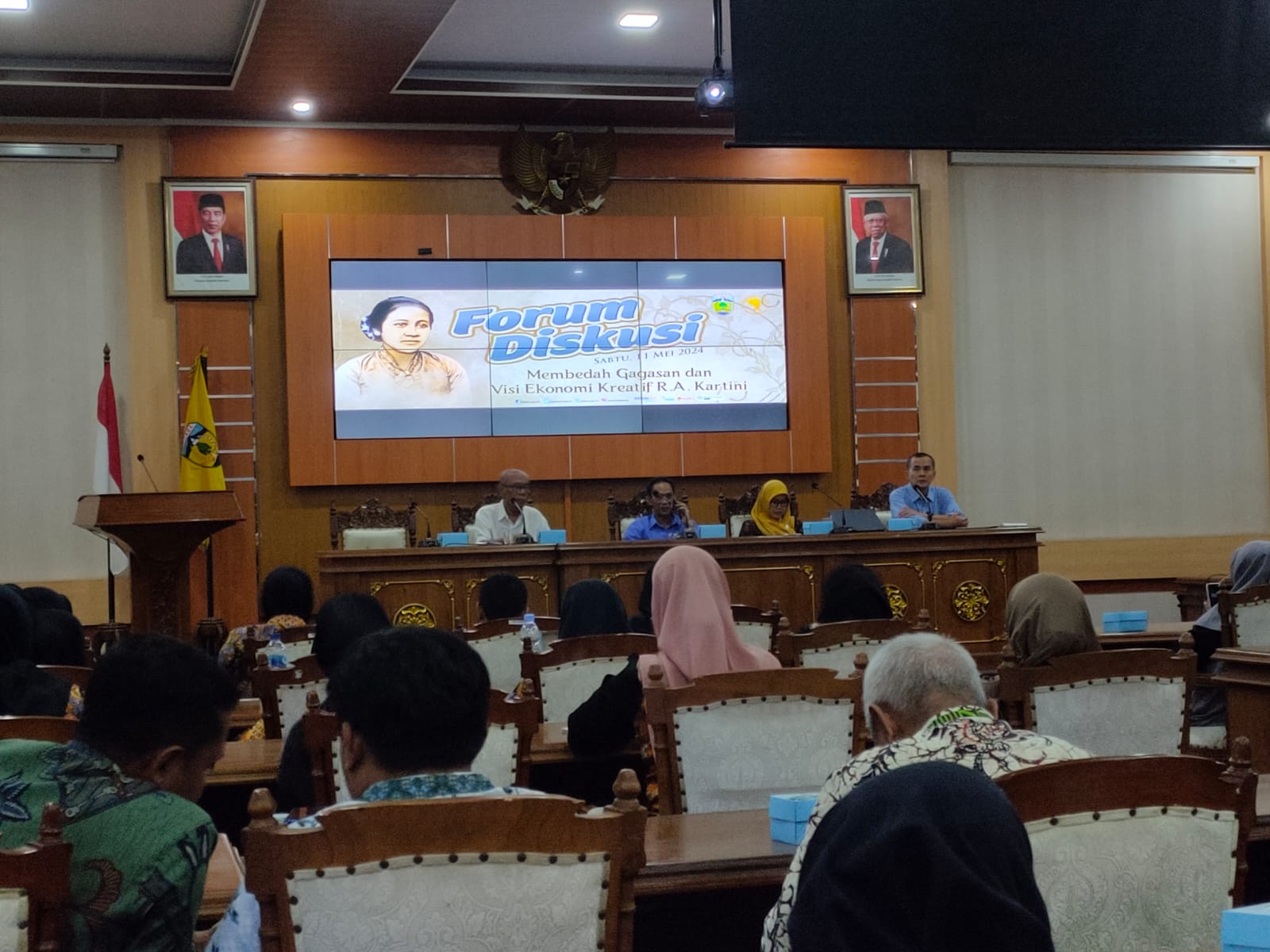 SKI | Jepara- Dalam rangka giat Forum Diskusi Membedah Gagasan Dan Visi nya tentang Ekonomi Kreatif R.A Kartini yang dilaksanakan di ruang Gedung Shima,Kecamatan Jepara,Kabupaten Jepara Sabtu 11 /5/2024.