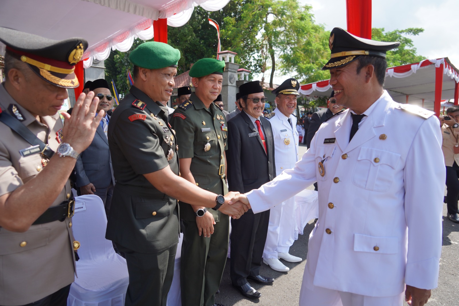 SKI | Purwokerto – Danrem 071/Wijayakusuma Kolonel Inf Yudha Airlangga, S.E., dengan didampingi Ketua Persit Kartika Chandra Kirana Koorcab Rem 071 PD IV/Diponegoro Ny. Natania Yudha Airlangga, hadiri Upacara Hari Jadi Ke-452 Kabupaten Banyumas, Rabu (22/2/2023) di Alun-alun Purwokerto, Banyumas.