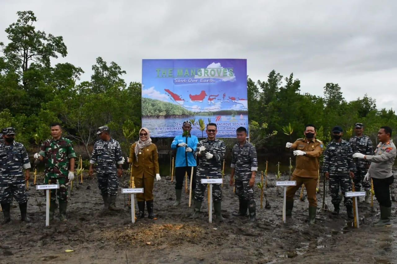 SKI | Sibolga,- Dengan semangat Hari Mangrove Sedunia yang jatuh pada tanggal 26 Juli 2022, Pangkalan TNI AL Sibolga bersama 77 wilayah di Indonesia melaksanakan program penanaman mangrove serentak yang dipimpin langsung oleh Kepala Staf Angkatan Laut (Kasal) Laksamana TNI Yudo Margono, S.E., M.M., yang juga dihadiri oleh Menteri Lingkungan Hidup dan Kehutanan Dr. Ir. Siti Nurbaya, M.Sc., dan beberapa duta negara sahabat di Tanjung Pasir Tangerang Banten, Selasa (26/07/22).