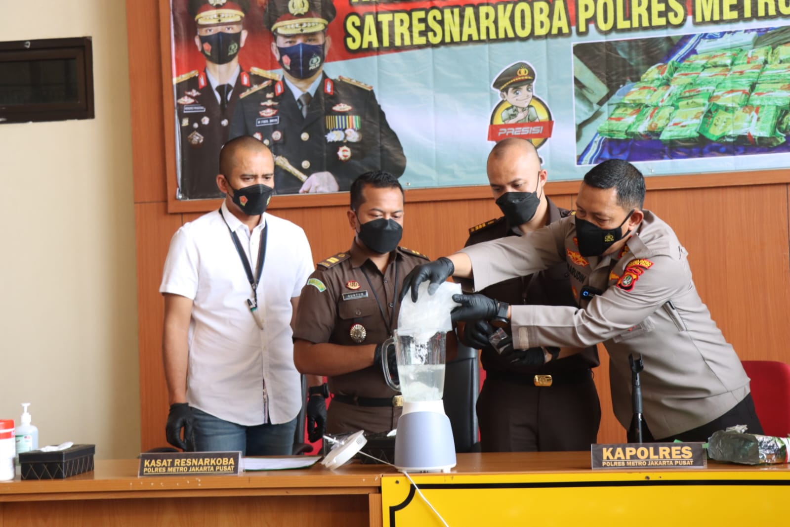 SKI | Jakarta – Polres Metro Jakarta Pusat menggelar konferensi pers dalam rangka pemusnahan barang bukti Narkotika jenis sabu sebanyak 23 Kg di Lapangan Merah Polres, Rabu (27/07/22).