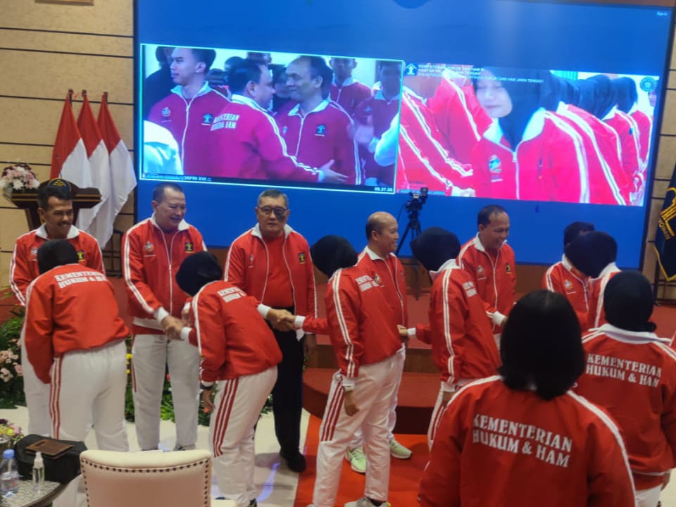 Dilakukan secara terpusat dari gedung Graha Pengayoman Kemenkumham RI, Sekretaris Jenderal Kemenkumham RI (Andap Budi Revianto) resmi melepas keberangkatan para atlet yang akan berlaga dalam Pornas Korpri Tahun 2023 di Semarang, Jawa Tengah.