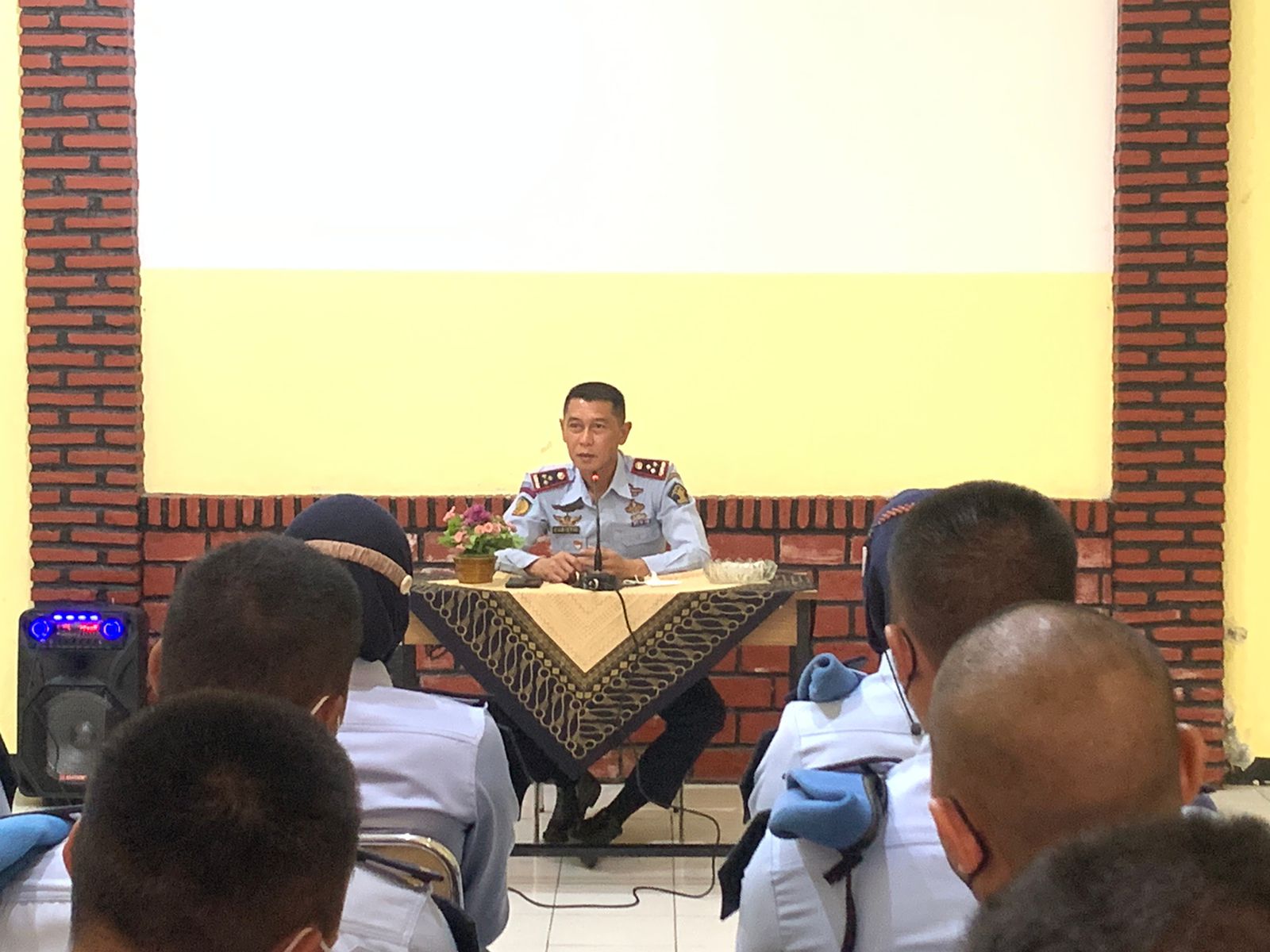 SKI | Nusakambangan – Kalapas Narkotika (RM. Kristyo Nugroho) didampingi Pejabat Struktural melakukan pertemuan sekaligus memberikan penguatan kepada Taruna POLTEKIP Angkatan 53 yang sedang melaksanakan Magang melalui program Satriya Sancaya Karyadhika di Lapas Narkotika Kelas IIA Nusakambangan, bertempat di Ruang Edukasi (Selasa, 13/09/2022).