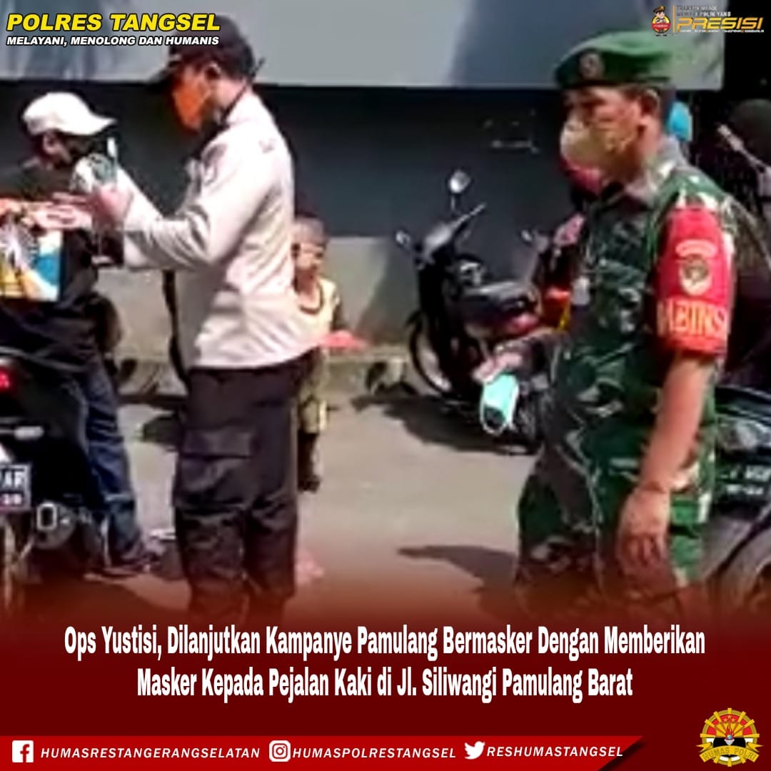 Operasi Yustisi dan Kampanye Pamulang Bermasker Dengan Memberikan Masker