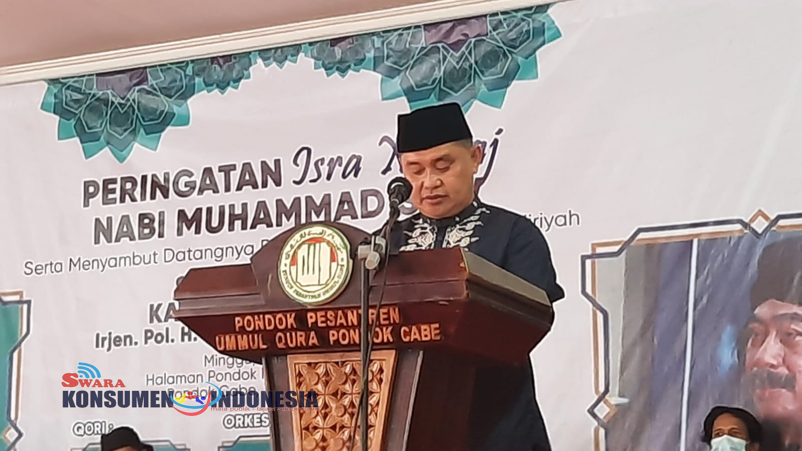 Peringatan Isra’ Mi’raj Nabi Muhammad SAW yang dilaksanakan di Ponpes Ummul Quro Jl. Pondok Cabe Raya Gg. Pesantren Kel. Pondok Cabe Ilir Kec. Pamulang. Turut Hadir Dalam Kegiatan tersebut, Kapolda Metro Jaya Irjen. Pol. HM. Fadil Imran, M.Si., Kapolres Tangerang Selatan AKBP. Sarly Sohlu, SH, MH., Dir Intelkam Polda Metro Jaya Kombes. Pol. Hirbak Wahyu Setiawan, S.IK, MH., Dir Binmas Polda Metro Jaya Kombes. Pol. Badya Wijaya, S.IK, SH, M.Si., Kapolsek Pamulang Kompol. M. Endy Mahandika, SH., beserta Serka. Siahaan (Babinsa Koramil / Mewakili Danramil 0506 Ciputat Pamulang).