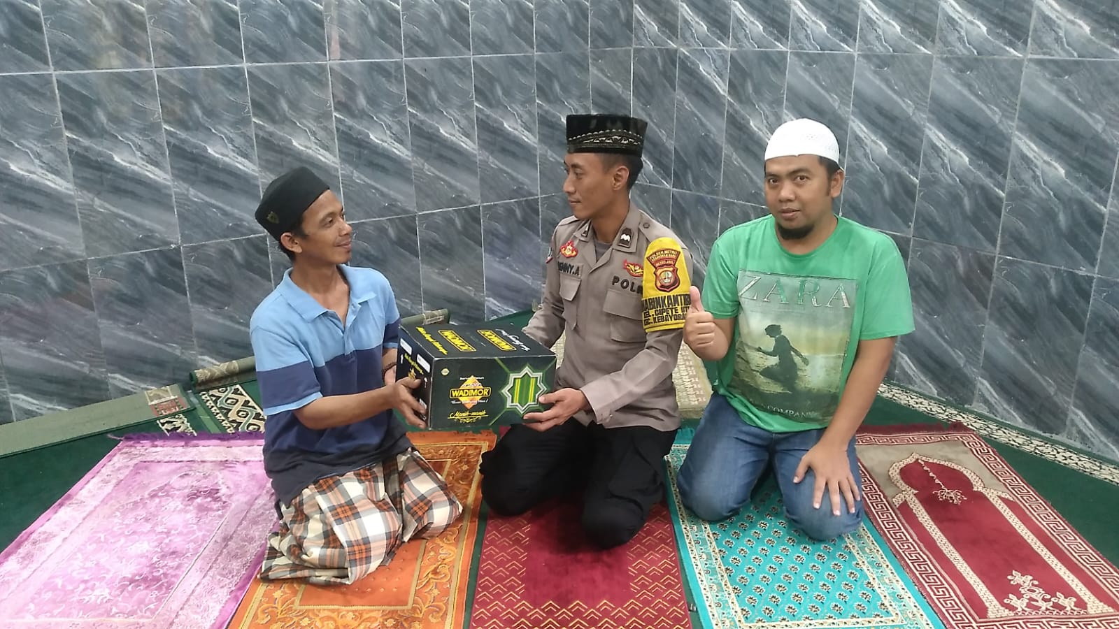 Kapolsek Metro Kebayoran Baru melalui Bhabinkamtibmas Kel. Cipete Utara Aipda Denny Anggoro melaksanakan penyerahan bantuan berupa 10 Buah Sarung dan 10 Buah Peci dari Kapolsek Metro Kebayoran Baru kepada DKM dan Pengurus Mushola Himmatula’la. (Why).
