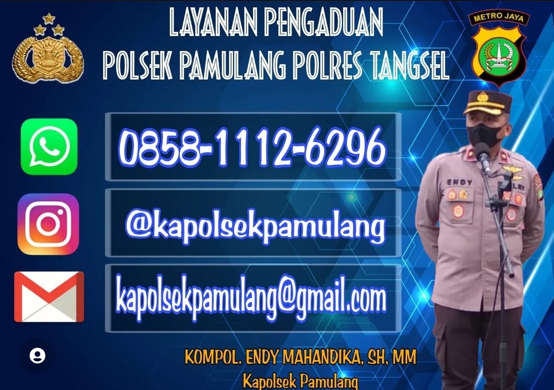 SKI | Tangsel – Bagikan nomor kontak di medsos kapolsek Pamulang meminta masyarakat untuk tida ragu sampaikan secara langsung apa yang menjadi kendala serta gangguan kamtibmas di wilayah hukum Pamulang.