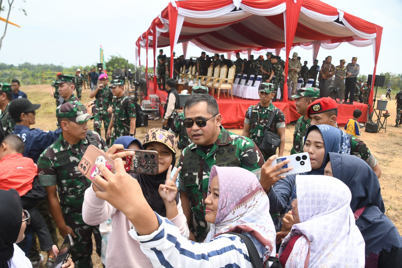 SKI | SUMSEL – Kepala Staf Angkatan Darat (Kasad), Jenderal TNI Maruli Simanjuntak, M.Sc., mendampingi Panglima TNI, Jenderal TNI Agus Subiyanto, S.E., M.M., dalam peninjauan penerjunan _Container Delivery System_ (CDS) dan Airborne oleh pasukan militer Jepang. Kegiatan ini berlangsung di Pusat Latihan Tempur (Puslatpur) Baturaja, Sumatera Selatan, pada Kamis (29/8/24).
