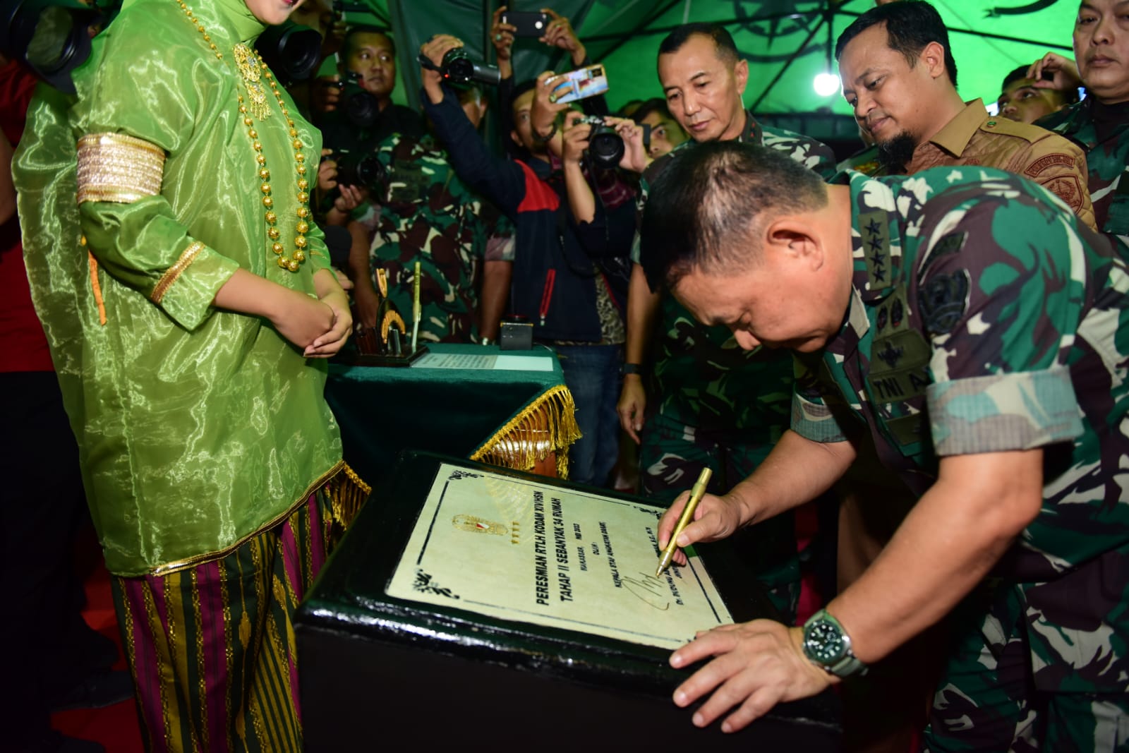 Peresmian rehab RTLH di wilayah Kodam XIV/Hasanuddin ini juga dihadiri Gubernur Sulawesi Selatan Andi Sudirman Sulaiman, Pangdam XIV/Hasannudin Mayjen TNI Totok Imam Santoso, dan Walikota Makassar Danny Pomanto. Peresmian dilakukan secara simbolis dengan ditandatanganinya prasasti, diikuti dengan penekanan tombol sirene oleh Kasad, serta disaksikan secara virtual oleh Satuan-Satuan Kodim di wilayah Kodam XIV/Hasanuddin melalui Video Conference.