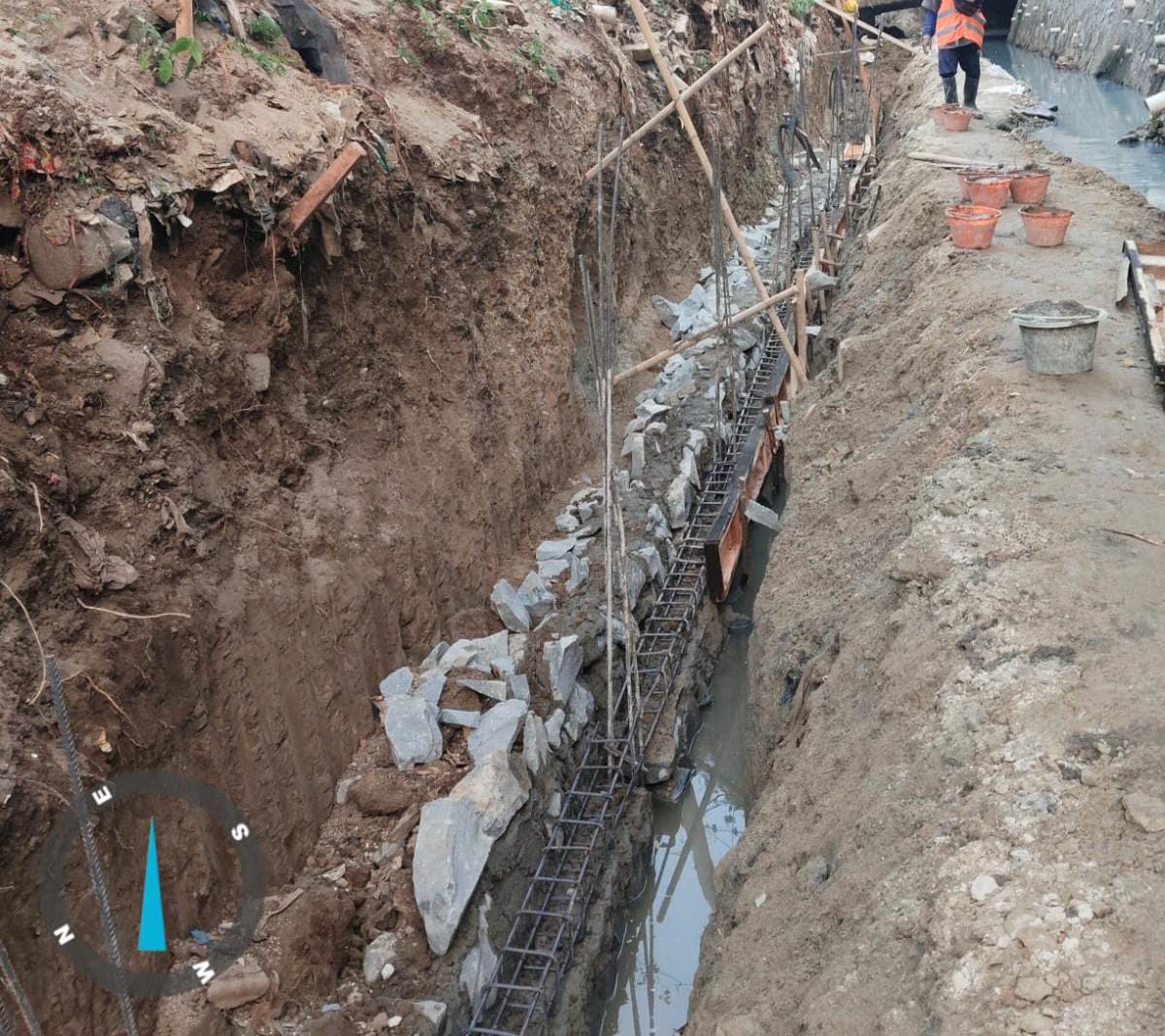 Pemasangan batu kali juga diduga menggunakan beton semen adukan manual ukuran 1 / 10.