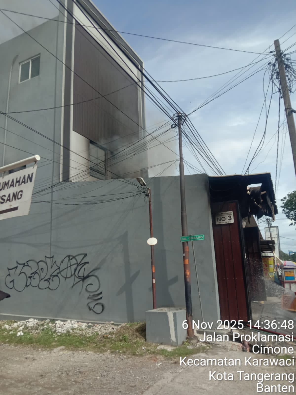 SKI | Tangerang — Kebakaran hebat terjadi di sebuah ruko dua lantai yang berada di kawasan * jalan proklamasi rt 01 rw 02/kelurahan] cimone Kecamata Karawaci , Kota Tangerang, sekitar jam 2:30 WIB, Api dengan cepat membesar dan melalap sebagian besar bangunan ke bakaran berhasil dipadamkan oleh petugas pemadam kebakaran Kota Tangerang, kamis (06/11/25)