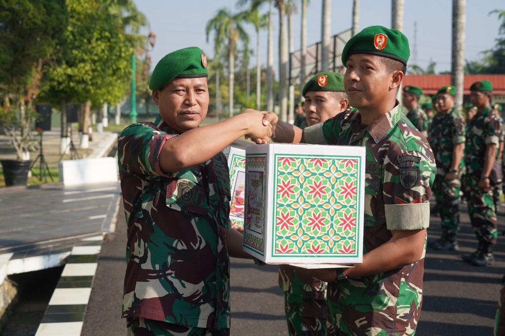 SKI | Banyumas – Menjelang hari Natal, Korem 071/Wijayakusuma serahkan bingkisan kepada prajurit dan PNS yang akan merayakan Natal. Penyerahan bingkisan natal itu, diserahkan langsung oleh Kasrem 071/Wijayakusuma Letkol Inf Catur Irawan, S.I.P., M.I.P., mewakili Danrem 071/Wijayakusuma Kolonel Czi Mohammad Andhy Kusuma, S.Sos., M.M., M.Han., di Makorem 071/Wijayakusuma, Sokaraja, Banyumas. Sabtu (23/12/2023).