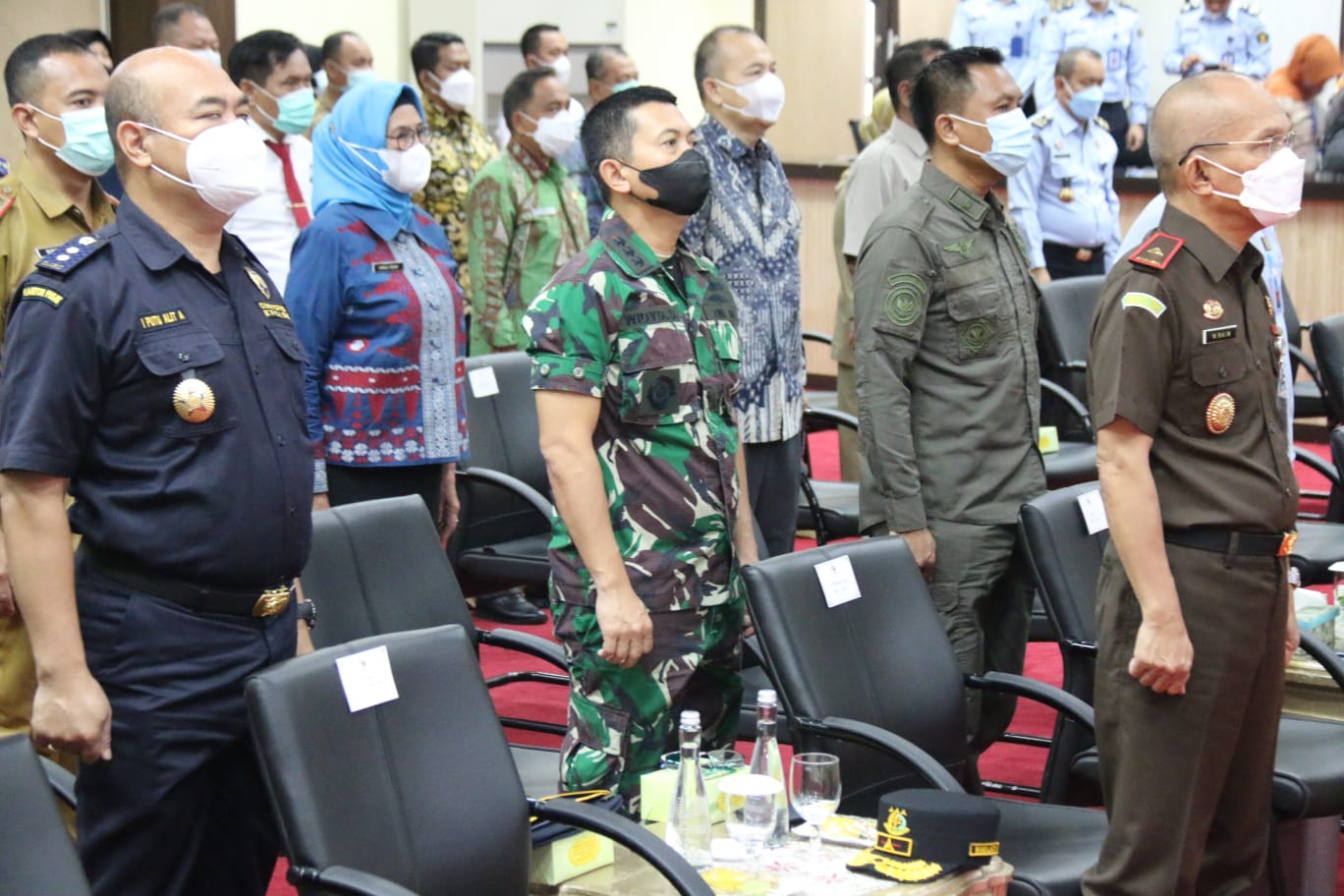 Kombes Pol Agus sudarno, S.H., M.H., Danlanal Palembang Kolonel Laut (P) Widyo Sasongko, S.E., M. Tr. Han., Kasi Intel Korem 044/Gapo Letkol Inf Arif Gumelar, Dansatpom Lanud SMH
