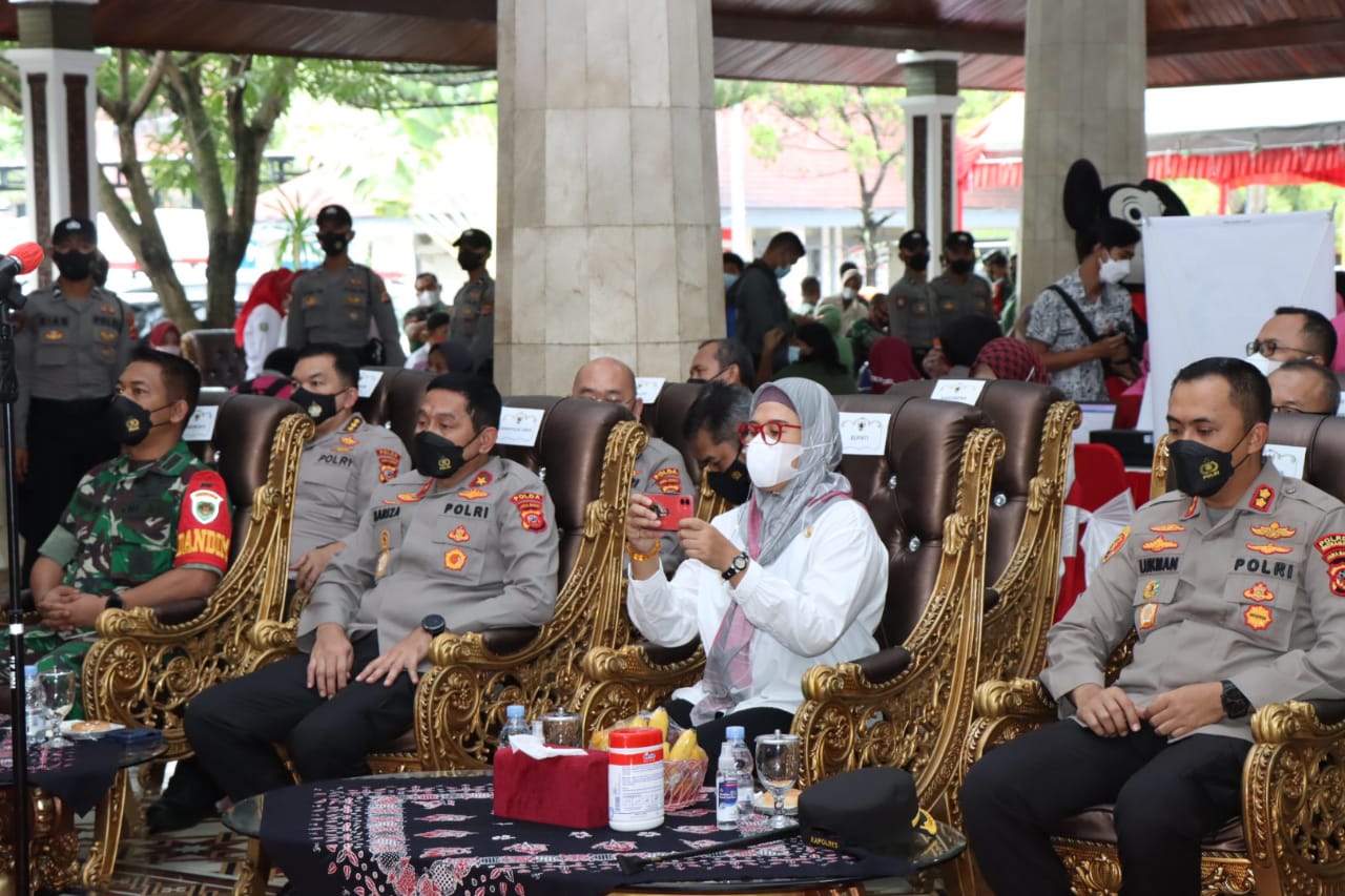 Bupati Hj. Nina Agustina, S.H., M.H., C.R.A, Kapolres Indramayu AKBP M. Lukman Syarif, S.I.K., M.H., Dandim 0616 Indramayu Letkol Inf. Teguh Wibowo, S.Sos., serta unsur Forkopimda lainnya menyambut kunnjngan kerja Waka Polda Jabar, yang bertujuan untuk meninjau langsung pelaksanaan akselerasi vaksinasi merdeka anak di Kabupaten Indramayu berjalan dengan aman dan lancar.