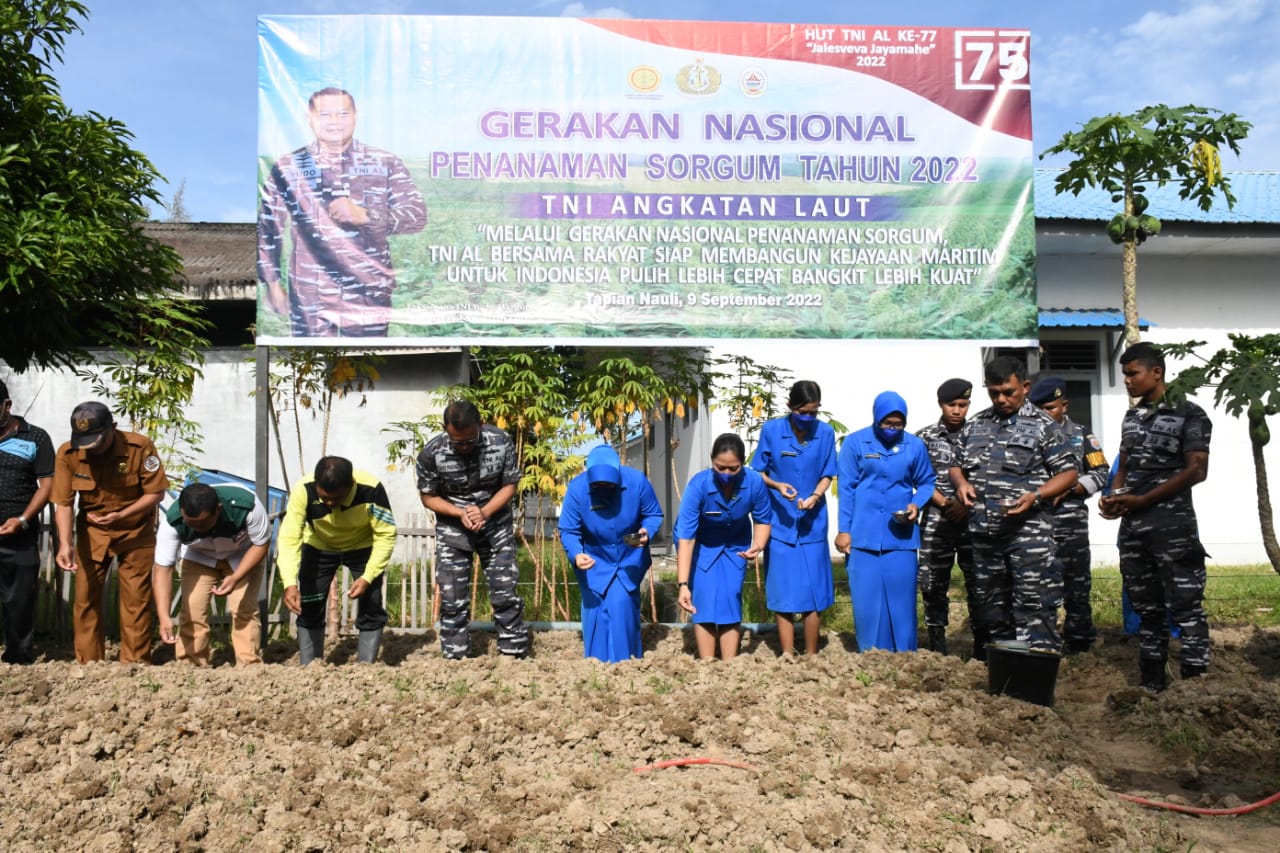 Kegiatan ini dilaksanakan nasional dan serentak di 77 titik yang terpusat di Cariu Kabupaten Bogor yang dipimpin oleh Kepala Staf Angkatan Laut Laksamana TNI Yudo Margono diwakili oleh Wakil Kepala Staf Angkatan Laut Laksamana Madya TNI Ahmadi Heri Purwono dan diikuti secara virtual melalui video conference oleh Komandan Lanal Sibolga Letkol Laut (P) Cahyo Pamungkas, M. Tr. Opsla didampingi Ketua Jalasenastri Cabang 3 Korcab II DJA I Ny. Marina Cahyo Pamungkas beserta tamu undangan dengan tema “Melalui Gerakan Nasional Penanaman Sorgum, TNI AL Bersama Rakyat Siap Membangun Kejayaan Maritim Untuk Indonesia Pulih Lebih Cepat Bangkit Lebih Kuat”.