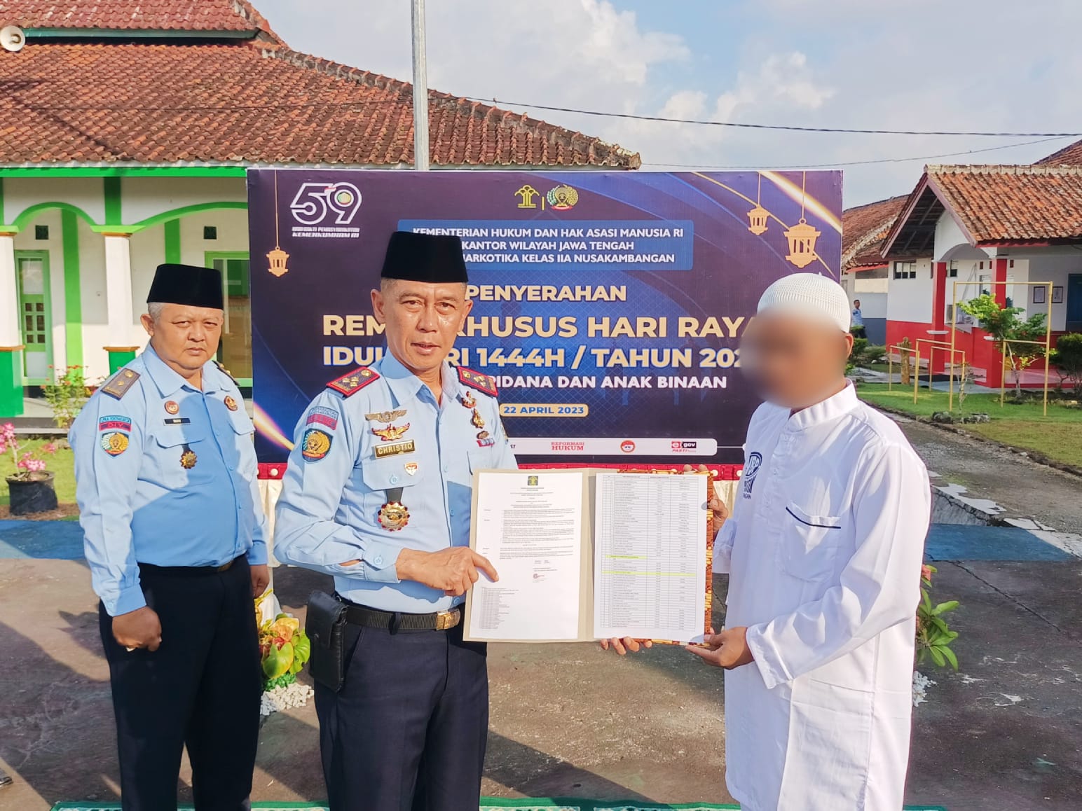 Kegiatan dilanjutkan dengan Penyerahan SK Remisi Khusus kepada narapidana secara simbolis oleh Kalapas, sekaligus membacakan sambutan Menteri Hukum dan HAM RI. Jumlah narapidana yang mendapat Remisi Khusus tahun ini, sebanyak 130 orang. Pada momentum Hari Raya Idul Fitri ini seluruh warga binaan juga dapat menikmati hidangan “Lontong Opor Ayam”, yang dibagikan oleh Petugas.