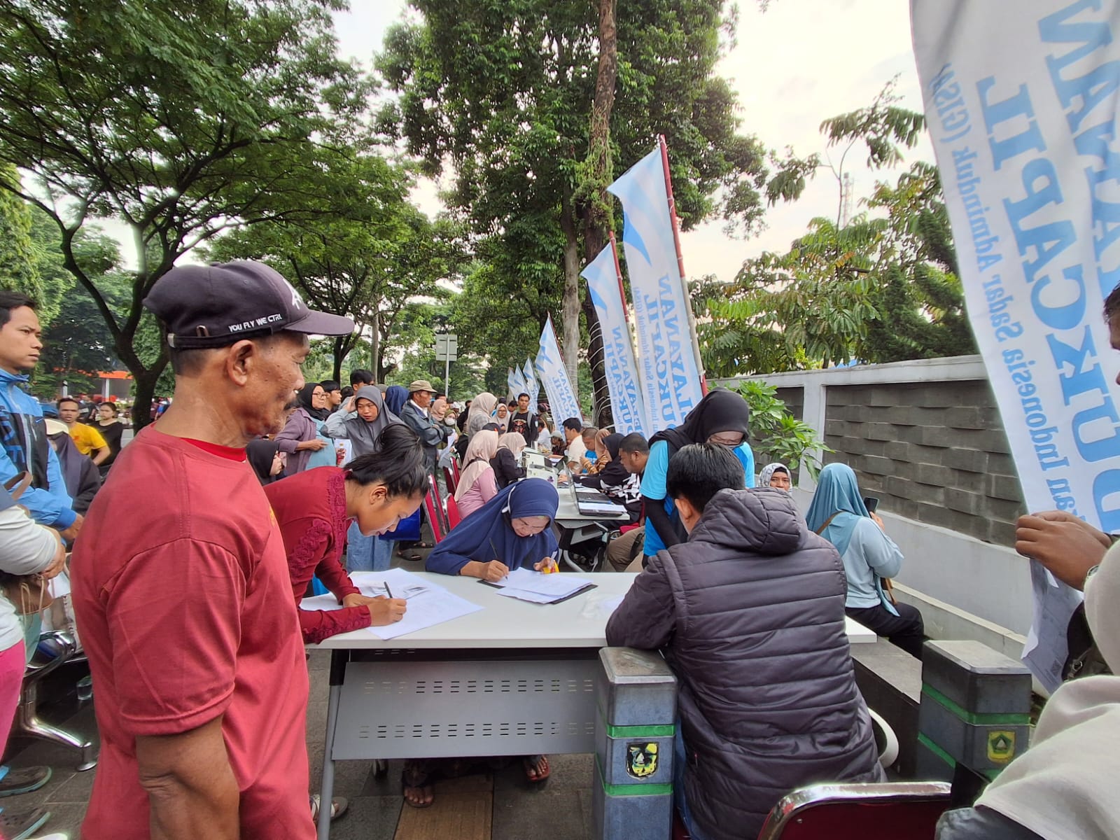 SKI Cibinong- Pelayanan jemput bola Dinas Kependudukan dan Pencatatan Sipil (Disdukcapil) Kabupaten Bogor pada kegiatan Car Free Day (CFD) Tegar Beriman kembali diserbu masyarakat. Sejak pagi, warga memanfaatkan berbagai layanan administrasi kependudukan, mulai dari perekaman KTP-el, pembuatan KIA, perbaikan data, hingga dan dokumen kependudukan lainnya, pada Minggu (23/11/25).