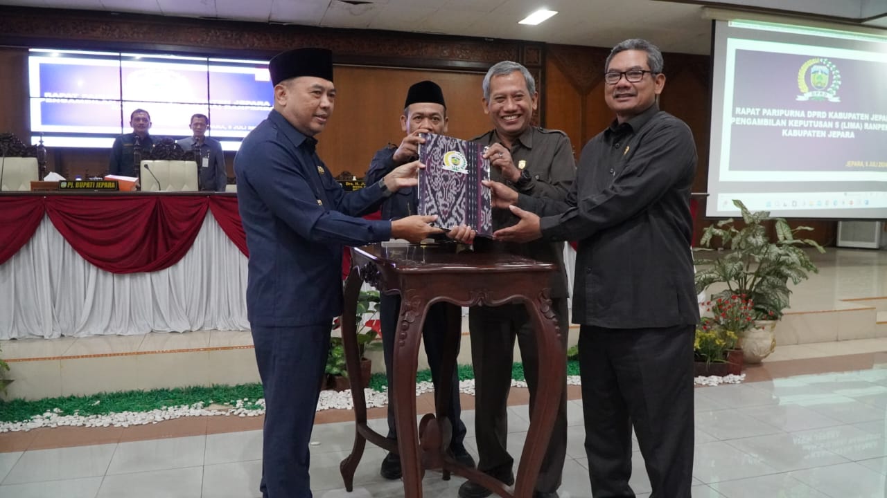 Lima Ranperda yang disetujui dewan yakni Ranperda Rencana Pembangunan Jangka Panjang Daerah (RPJPD) Kabupaten Jepara 2025-2045, Pembentukan dan Susunan Perangkat Daerah Kabupaten Jepara, Pelestarian dan Pengelolaan dan pelestarian Cagar Budaya, Penataan Pasar Rakyat dan Toko Modern, serta Pertanggungjawaban Pelaksanaan APBD Kabupaten Jepara Tahun Anggaran 2023.