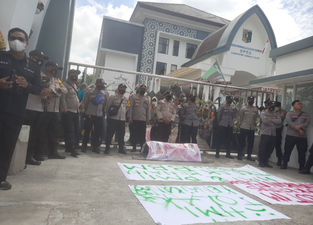 Aksi massa tersebut mendapatkan pengawalan ketat dari aparat kepolisian dengan langsung dipimpin Kapolres Lotim, AKBP Hery Indra Cahyono,Sik,MH.