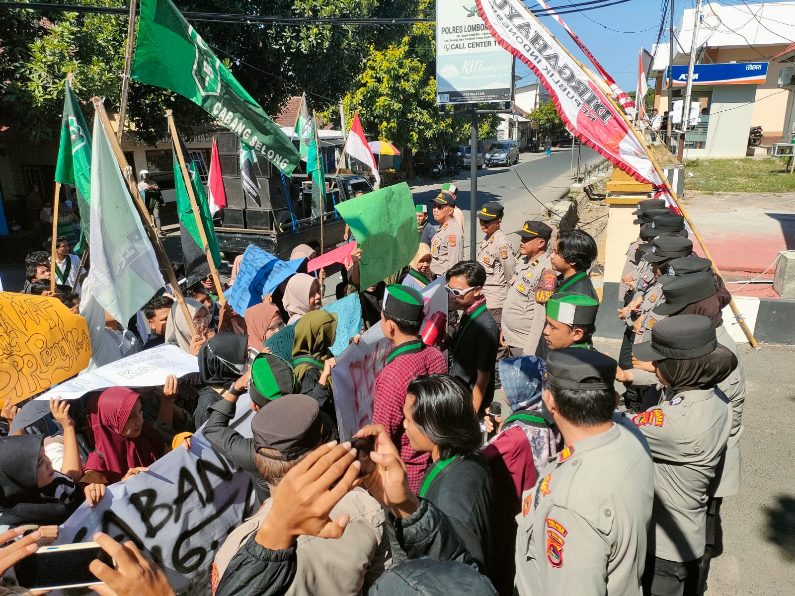 Sementara kedatangan aksi diterima Kasat Binmas Polres Lotim, Iptu Abdul Rasyid dengan menjelaskan apa yang menjadi aspirasi dan tuntutan mahasiswa akan kami teruskan ke pimpinan.