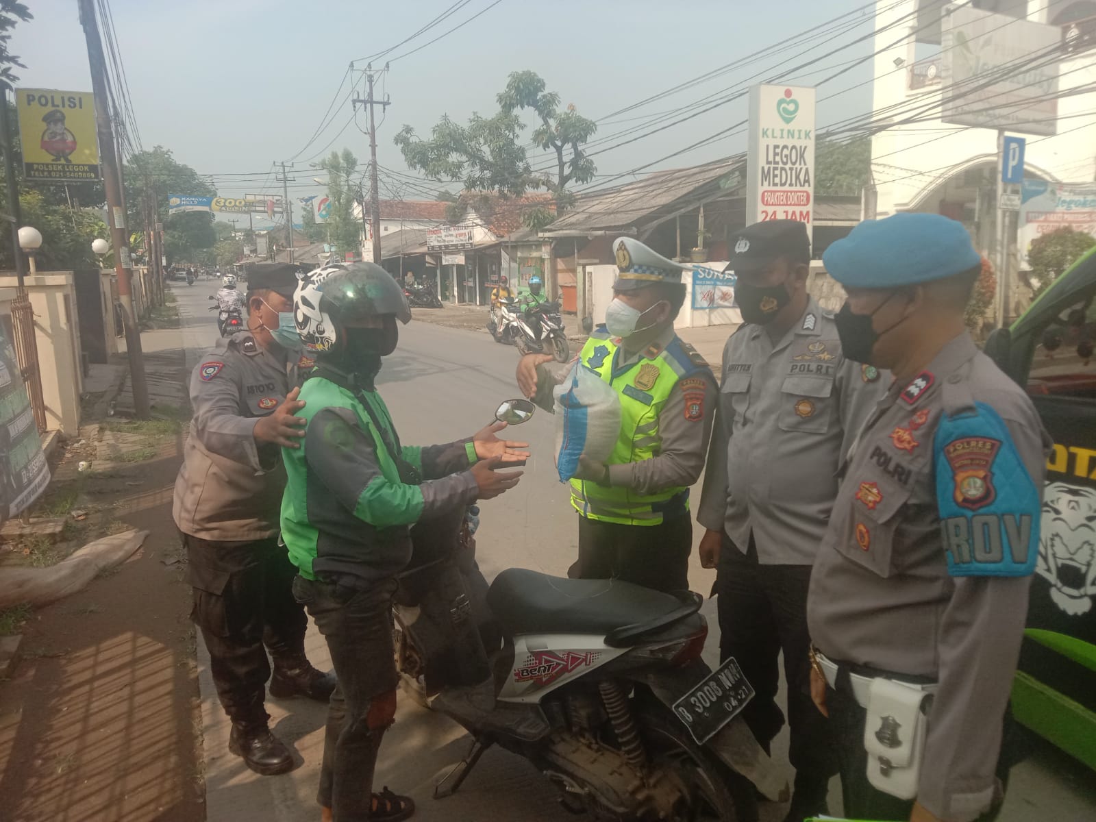 Melalui Polri Peduli, Polsek Legok Bagikan Sembako Ke Ojol