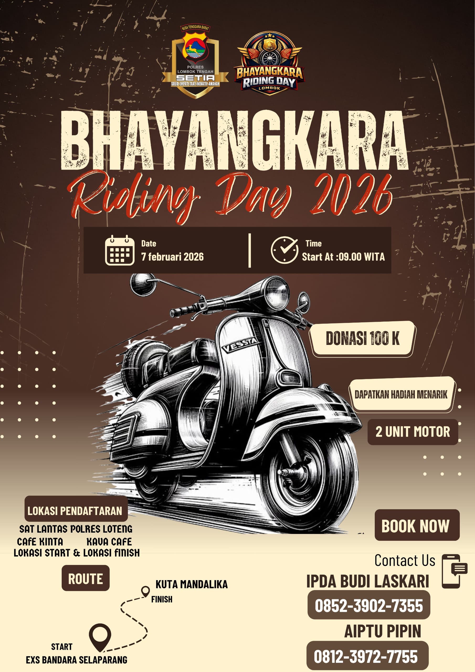 Polres Lombok Tengah mengajak seluruh elemen masyarakat untuk ikut meramaikan dan menyukseskan Bhayangkara Riding Day 2026, sebagai bentuk dukungan terhadap budaya, kemanusiaan, serta pariwisata di Kabupaten Lombok Tengah. (Riki)