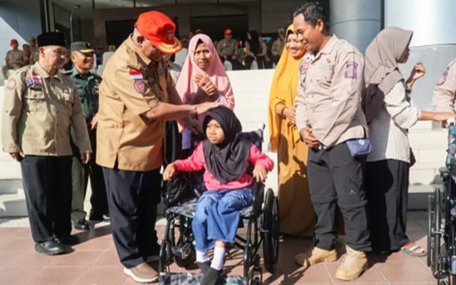 SKI | Lotim – Bupati Lombok Timur,HM.Sukiman Azmy menyerahkan sebanyak lima unit kursi roda kepada difabel dan masyarakat kurang mampu di Lotim.Dengan memanfaatkan moment peringatan HUT Tagana ke-19 tingkat provinsi yang bertempat di halaman kantor Bupati Lotim, Senin (29|5).