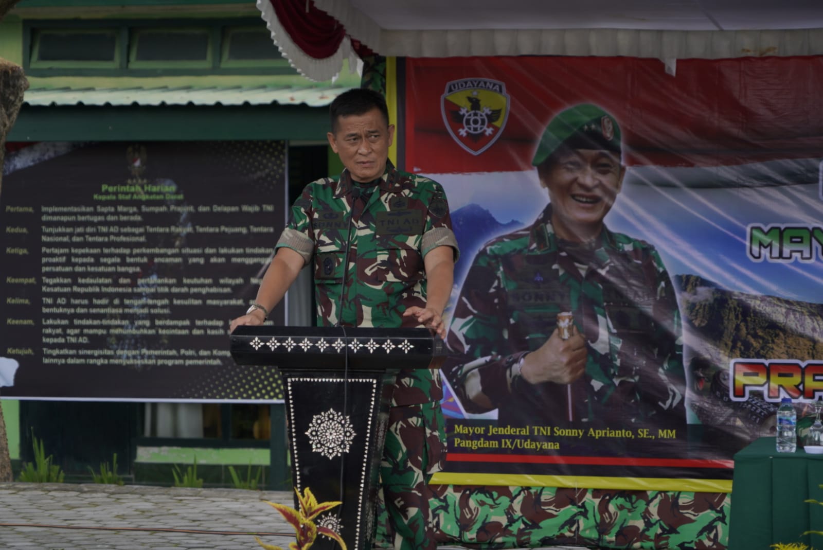 SKI l Lombok Timur – Pangdam IX/Udayana Mayjen TNI Sonny Aprianto menyampaikan keberadaan Bintara Pembina Desa (Babinsa) di desa harus mampu memberikan solusi kepada masyarakat seperti yang dilakukan sekarang.